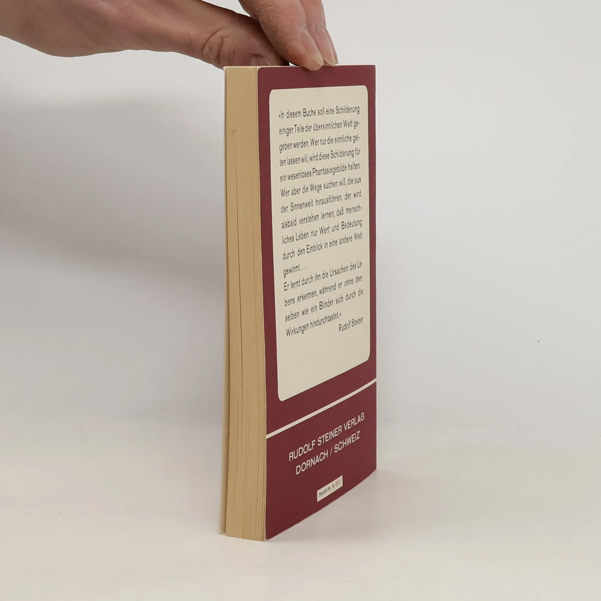 Die mystische Einführung in Steiners Werke (die andere ist seine Philosophie der Freiheit). Diese grundlegende Schrift Rudolf Steiners empfiehlt sich als Ausgangspunkt zu einem systematischen Studium der Anthroposophie. In ihr wird die leibliche, seelische und geistige Wesenheit des Menschen behandelt und die seelische und geistige Welt und deren Verbindungen mit der physischen Welt beschrieben. Einsichten in das Leben zwischen Tod und neuer Geburt werden gegeben und grundlegende Gedanken zu Reinkarnation und Karma entwickelt. Abschließend wir «Der Pfad der Erkenntnis» der höheren Welten in seinen Grundzügen geschildert. «In diesem Buche soll eine Schilderung einiger Teile der übersinnlichen Welt gegeben werden. Wer nur die sinnliche gelten lassen will, wird diese Schilderung für ein wesenloses Phantasiegebilde halten. Wer aber die Wege suchen will, die aus der Sinnenwelt hinausführen, der wird alsbald verstehen lernen, daß menschliches Leben nur Wert und Bedeutung durch den Einblick in eine andere Welt gewinnt … Er lernt durch ihn die Ursachen des Lebens erkennen, während er ohne denselben wie ein Blinder sich durch die Wirkungen hindurchtastet.» -- Rudolf Steiner