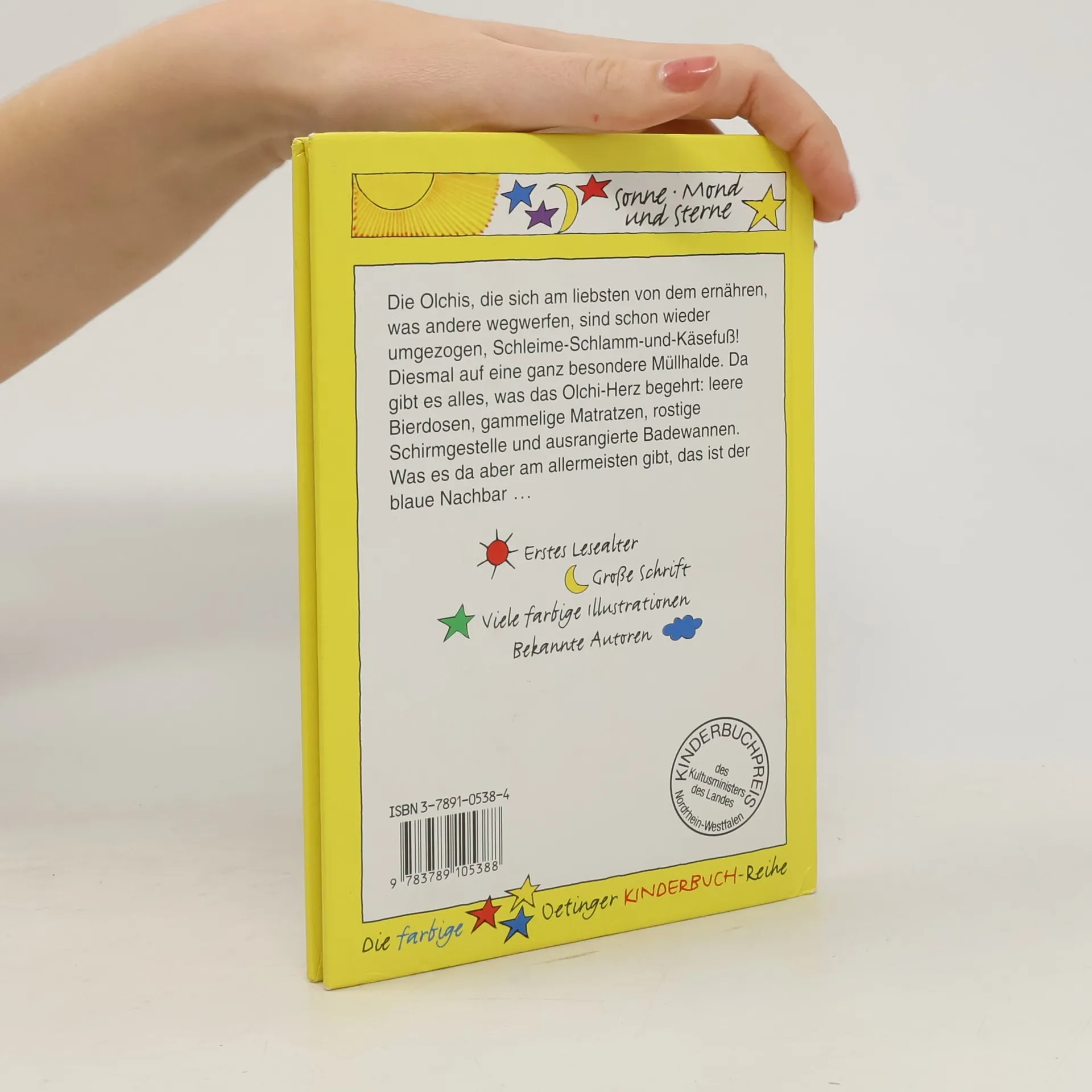 Die Olchis, die sich am liebsten von dem ernähren, was andere wegwerfen, sind schon wieder umgezogen, Schleime-Schlamm-und-Käsefuß! Diesmal auf eine ganz besondere Müllhalde. Da gibt es alles, was das Olchi-Herz begehrt: leere Bierdosen, gammelige Matratzen, rostige Schirmgestelle und ausrangierte Badewannen. Was es da aber am allermeisten gibt, das ist der blaue Nachbar.