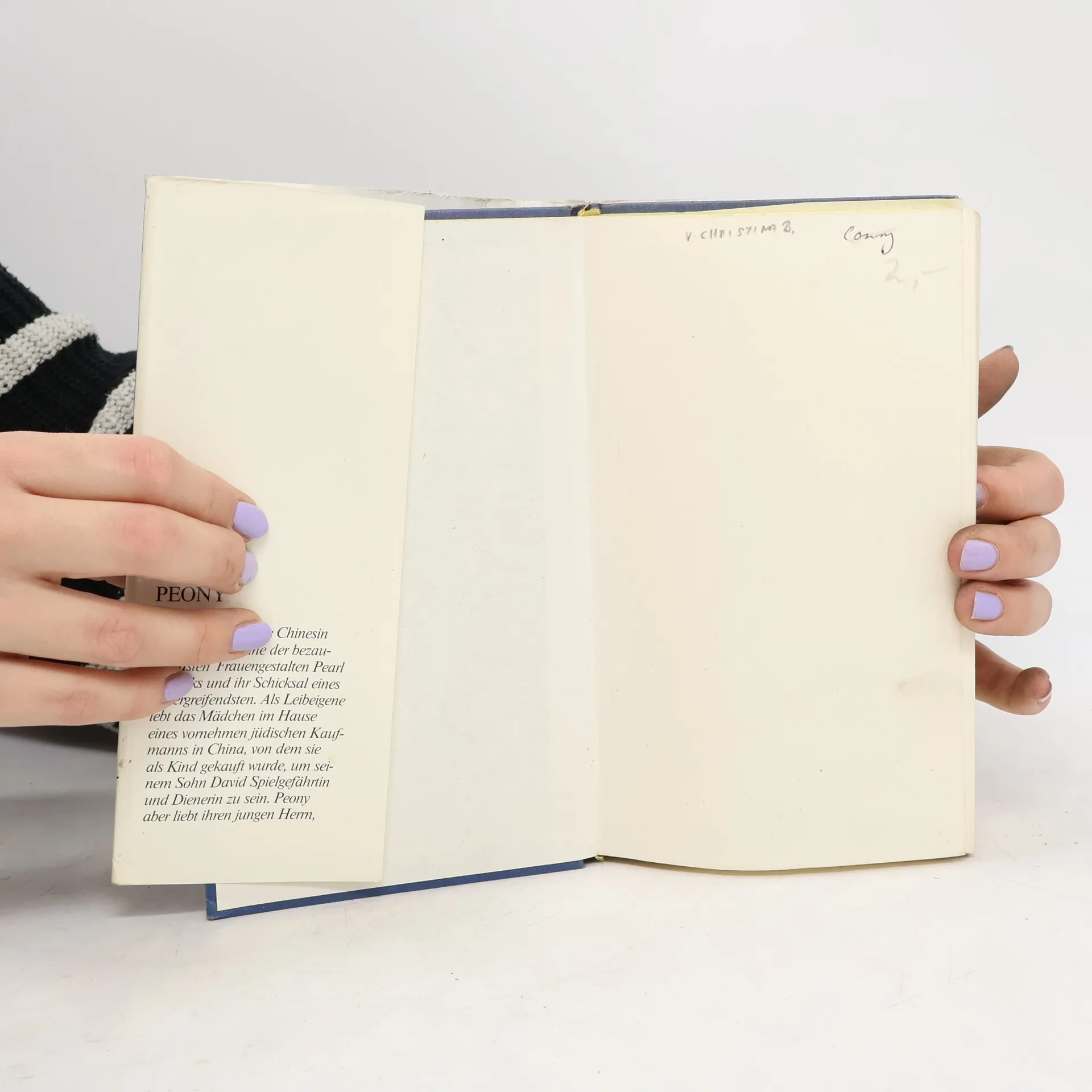 Als Kind von ihrer Familie an einen vornehmen jüdischen Kaufmann verkauft, um dessen Sohn David Spielgefährtin und Dienerin zu sein, muss Peony den ihr angemessenen Platz in dem großen Haushalt mit all seinen ihr unbekannten religiösen Tradition finden. Während ihres Heranwachsens vom Mädchen zur jungen Frau verliebt sie sich zu alledem auch noch in ihren jungen Herrn. Doch Peony weiß, dass die strengen fremdländischen Sitten eine Heirat zwischen Herrn und Leibeigener nie zulassen würden, vor allem da Davids Mutter bereits eine jüdische Braut für ihren Sohn auserwählt hat. Nun muss die junge Chinesin zu List und Tücke greifen, um sowohl ihr eigenes als auch Davids Leben zu der ihnen vorbestimmten Erfüllung zu führen.