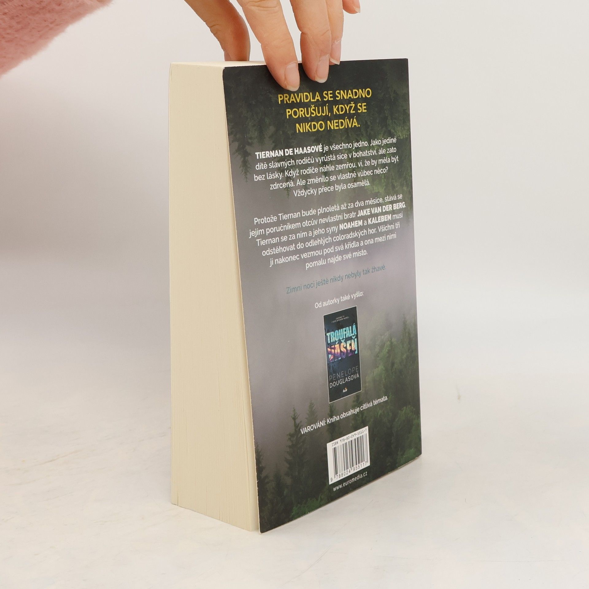 Tiernan de Haasové je všechno jedno. Jako jediné dítě slavných rodičů vyrůstá sice v bohatství, ale zato bez lásky. Když rodiče náhle zemřou, ví, že by měla být zdrcená. Ale změnilo se vlastně vůbec něco? Vždycky přece byla osamělá. Protože Tiernan bude plnoletá až za dva měsíce, stává se jejím poručníkem otcův nevlastní bratr Jake Van der Berg. Tiernan se za ním a jeho syny Noahem a Kalebem musí odstěhovat do odlehlých coloradských hor. Všichni tři ji nakonec vezmou pod svá křídla a ona mezi nimi pomalu najde své místo. Také si však uvědomí, že hranice se stírají a pravidla se snadno porušují, když se nikdo nedívá. Jeden z nich ji má. Druhý ji chce. Ale on… On si ji nechá.