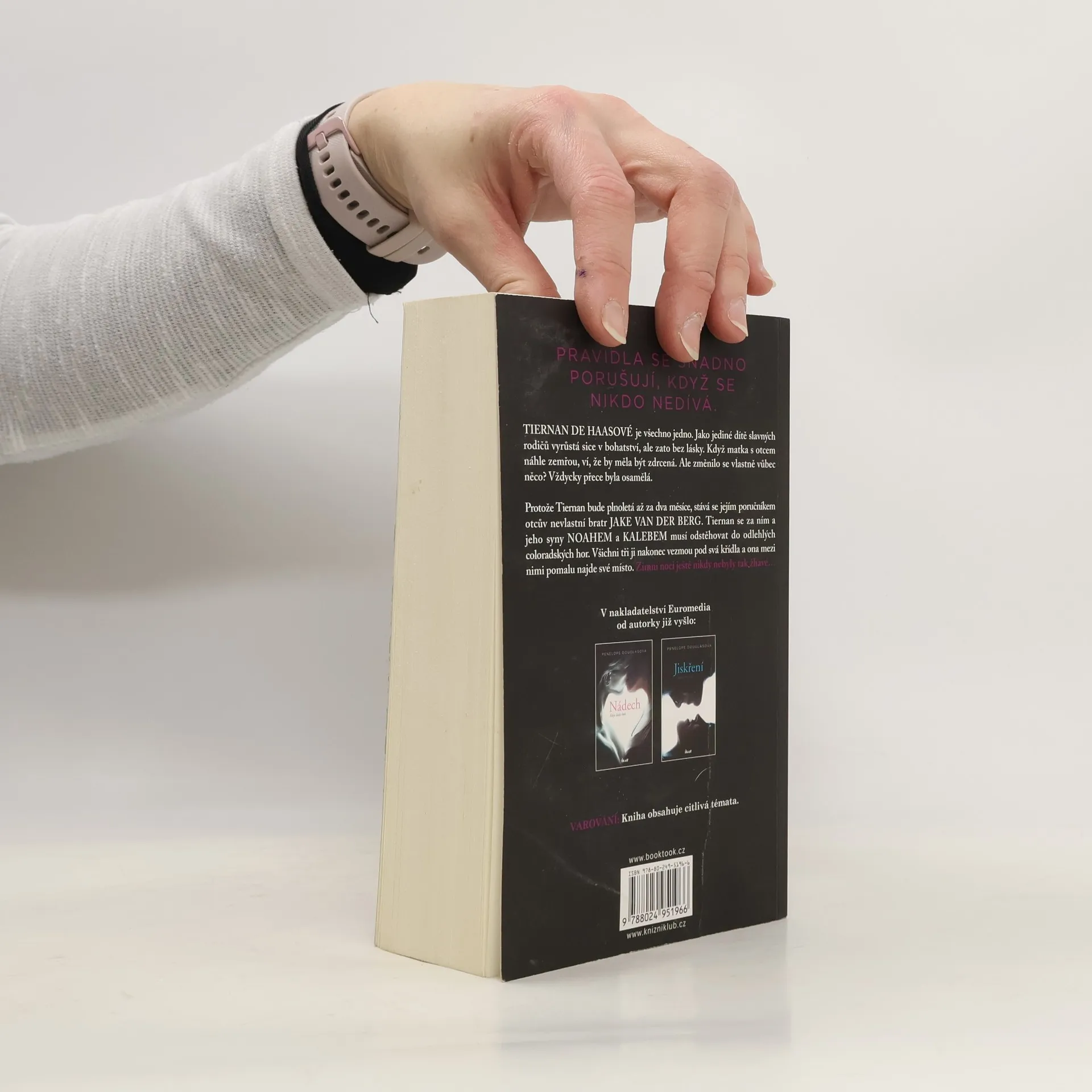 Tiernan de Haasové je všechno jedno. Jako jediné dítě slavných rodičů vyrůstá sice v bohatství, ale zato bez lásky. Když rodiče náhle zemřou, ví, že by měla být zdrcená. Ale změnilo se vlastně vůbec něco? Vždycky přece byla osamělá. Protože Tiernan bude plnoletá až za dva měsíce, stává se jejím poručníkem otcův nevlastní bratr Jake Van der Berg. Tiernan se za ním a jeho syny Noahem a Kalebem musí odstěhovat do odlehlých coloradských hor. Všichni tři ji nakonec vezmou pod svá křídla a ona mezi nimi pomalu najde své místo. Také si však uvědomí, že hranice se stírají a pravidla se snadno porušují, když se nikdo nedívá. Jeden z nich ji má. Druhý ji chce. Ale on… On si ji nechá.