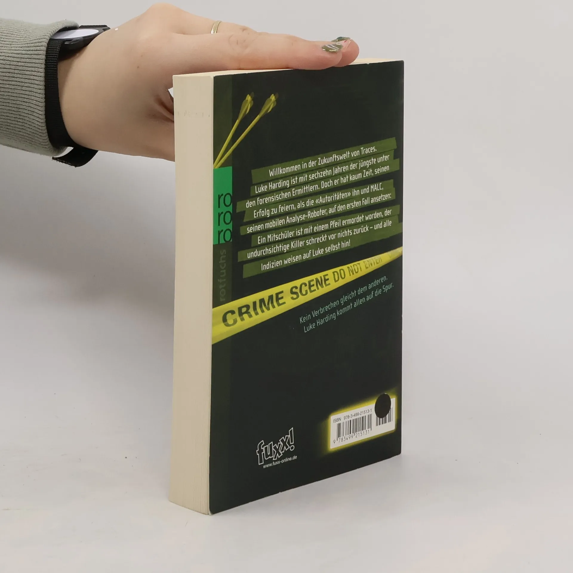 Willkommen in der Zukunftswelt von Traces. Luke Harding ist mit sechzehn Jahren der jüngste unter den forensischen Ermittlern. Doch er hat kaum Zeit, seinen Erfolg zu feiern, als die «Autoritäten» ihn und MALC, seinen mobilen Analyse-Roboter, auf den ersten Fall ansetzen: Ein Mitschüler ist mit einem Pfeil ermordet worden, der undurchsichtige Killer schreckt vor nichts zurück – und alle Indizien weisen auf Luke selbst hin! Crime Scene do not enter Kein Verbrechen gleicht dem anderen. Luke Harding kommt allen auf die Spur.