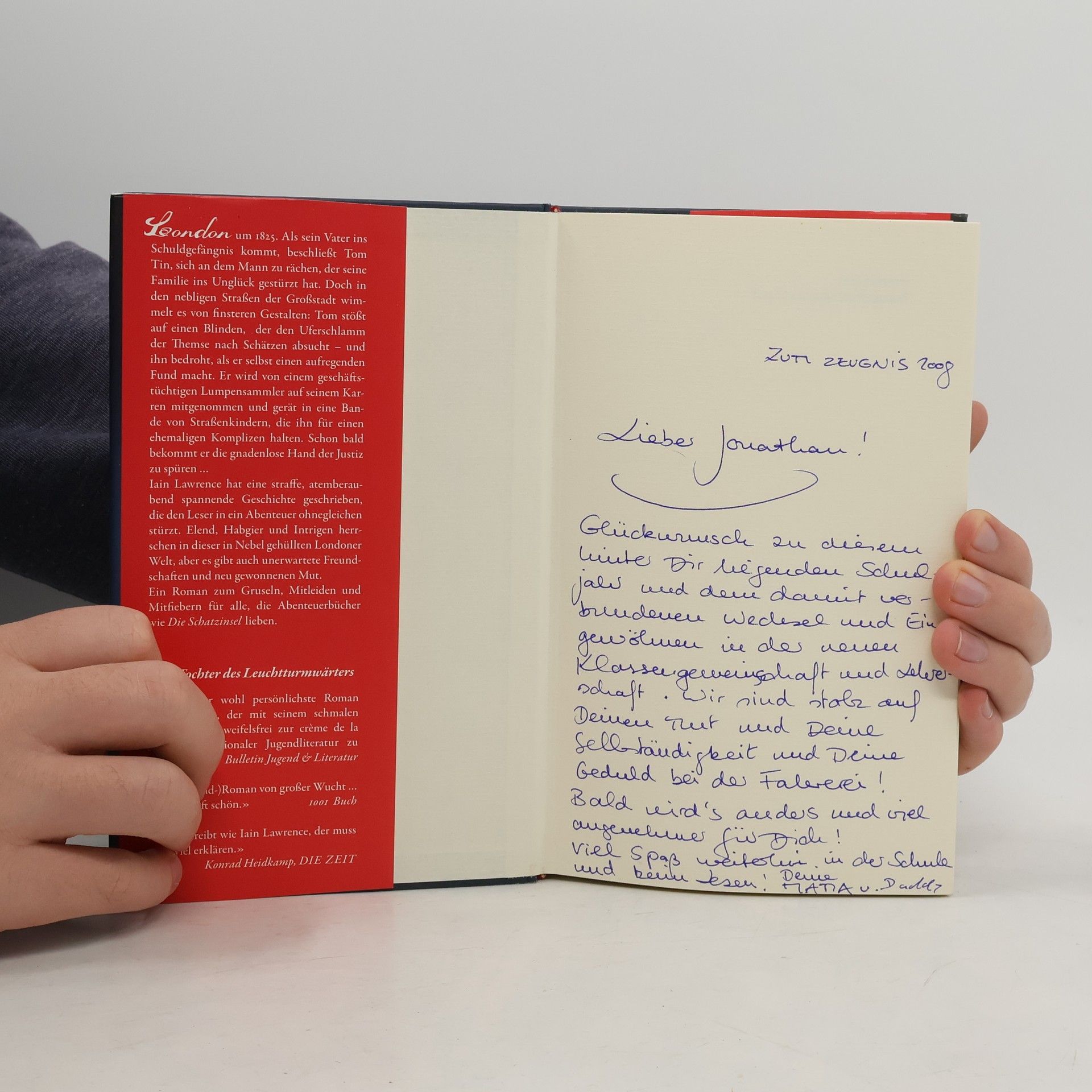 Ein Roman zum Gruseln, Mitleiden und Mitfiebern für alle, die Abenteuerbücher wie Die Schatzinsel lieben. London, um 1825. Als sein Vater ins Schuldgefängnis kommt, beschließt Tom Tin, sich an dem Mann zu rächen, der seine Familie ins Unglück gestürzt hat. Doch in den nebligen Straßen der Großstadt wimmelt es von finsteren Gestalten: Tom stößt auf einen Blinden, der den Uferschlamm der Themse nach Schätzen absucht. Er wird von einem Lumpensammler auf seinem Karren mitgenommen und gerät in eine Bande von Straßenkindern, die ihn für einen ehemaligen Komplizen halten. Schon bald bekommt er die gnadenlose Hand der Justiz zu spüren …
