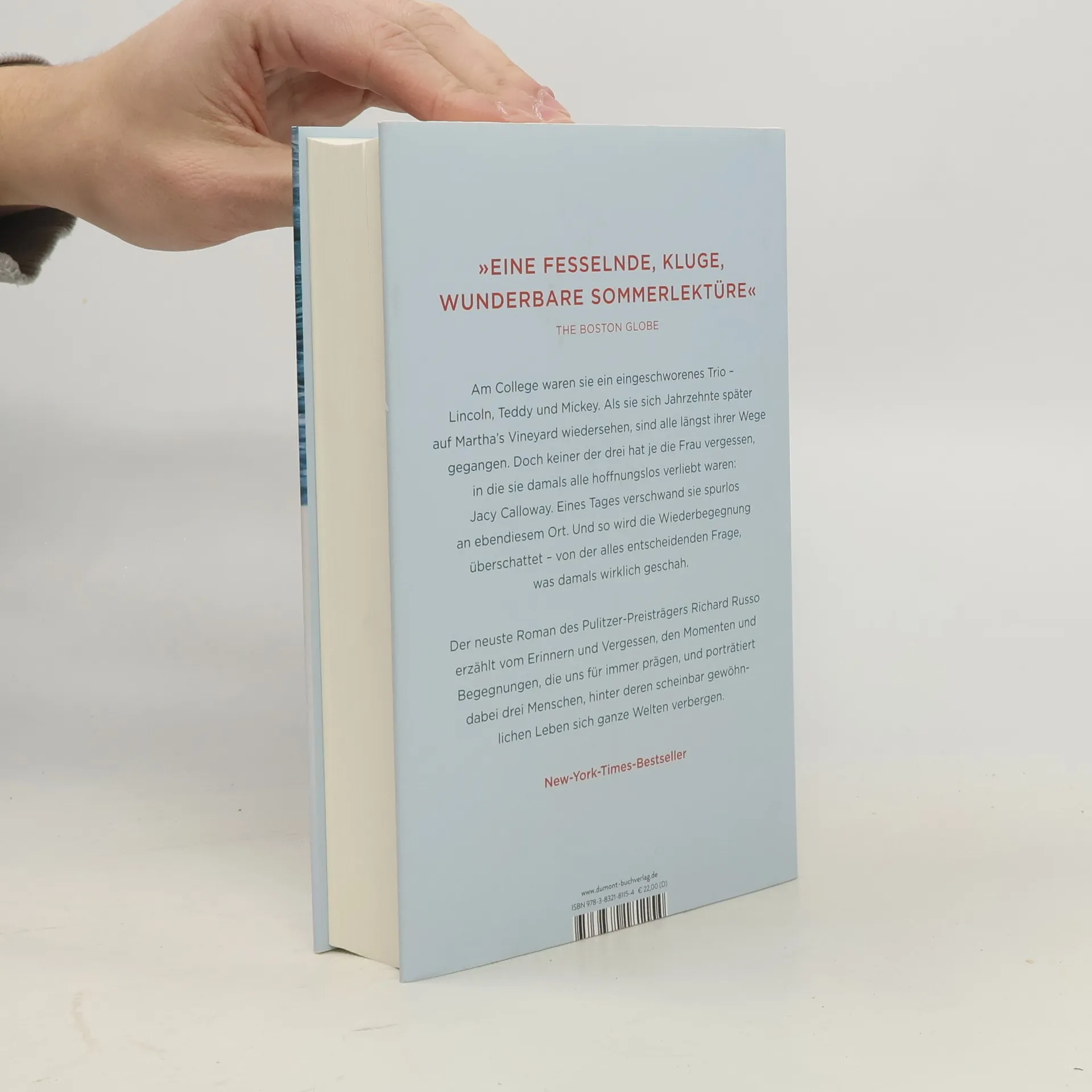 An einem Spätsommertag auf Martha’s Vineyard treffen sie sich wieder: Lincoln, Teddy und Mickey. Die drei Männer planen, das Wochenende in einem Ferienhaus auf der Insel zu verbringen – um der alten Zeiten willen. Seit dem Studium zu Vietnamkriegszeiten sind sie miteinander befreundet. Sie sind sehr unterschiedliche Wege gegangen, doch alle waren sie einst in dasselbe Mädchen verliebt, Jacy Calloway. Kurz nach ihrem Abschluss verschwand Jacy spurlos. Aber keiner von ihnen hat die Freundin vergessen – oder die Frage, wen von ihnen Jacy eigentlich liebte. Schließlich beginnt Lincoln, sich erneut mit den Umständen ihres rätselhaften Verschwindens zu beschäftigen. Was ist damals wirklich passiert? Richard Russo erzählt von drei Menschen, die sich fremd geworden sind, und vom Umgang mit der Unsicherheit, ob die eigenen Lebensentscheidungen die richtigen waren. Wie nebenbei ergibt sich daraus das Porträt eines Landes, das sich selbst nicht mehr ganz versteht. Mit ›Jenseits der Erwartungen‹ zeigt Russo seine ganze Könnerschaft – als großer Erzähler und als Menschenkenner.