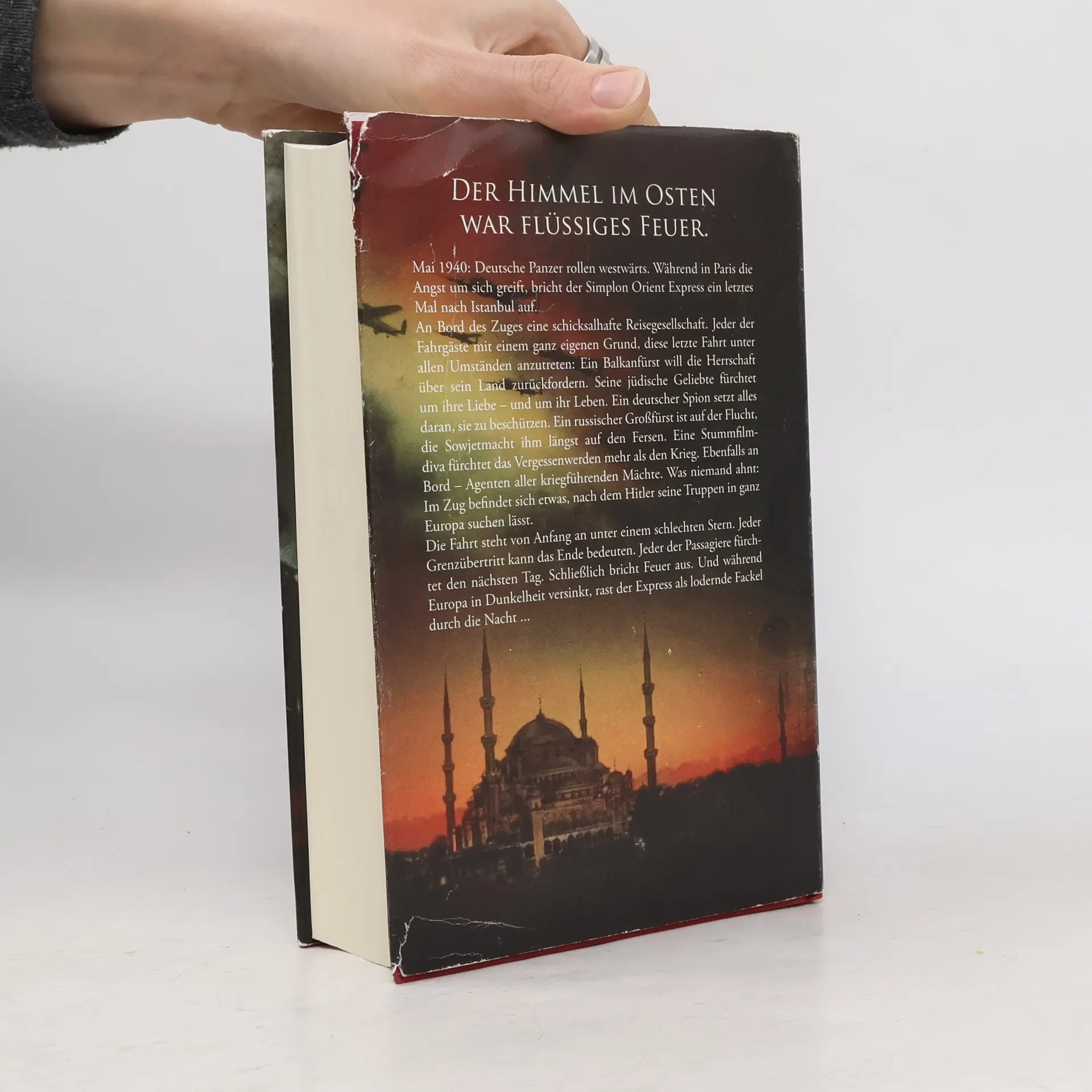 Der Himmel im Osten war flüssiges Feuer. Mai 1940: Deutsche Panzer rollen westwärts. Während in Paris die Angst um sich greift, bricht der Simplon Orient Express ein letztes Mal nach Istanbul auf. An Bord des Zuges eine schicksalhafte Reisegesellschaft. Jeder der Fahrgäste mit einem ganz eigenen Grund, diese letzte Fahrt unter allen Umständen anzutreten: Ein Balkanfürst will die Herrschaft über sein Land zurückfordern. Seine jüdische Geliebte fürchtet um ihre Liebe – und um ihr Leben. Ein deutscher Spion setzt alles daran, sie zu beschützen. Ein russischer Großfürst ist auf der Flucht, die Sowjetmacht ihm längst auf den Fersen. Eine Stummfilmdiva fürchtet das Vergessenwerden mehr als den Krieg. Ebenfalls an Bord – Agenten aller kriegführenden Mächte. Was niemand ahnt: Im Zug befindet sich etwas, nach dem Hitler seine Truppen in ganz Europa suchen lässt. Die Fahrt steht von Anfang an unter einem schlechten Stern. Jeder Grenzübertritt kann das Ende bedeuten. Jeder der Passagiere fürchtet den nächsten Tag. Schließlich bricht Feuer aus. Und während Europa in Dunkelheit versinkt, rast der Express als lodernde Fackel durch die Nacht ...