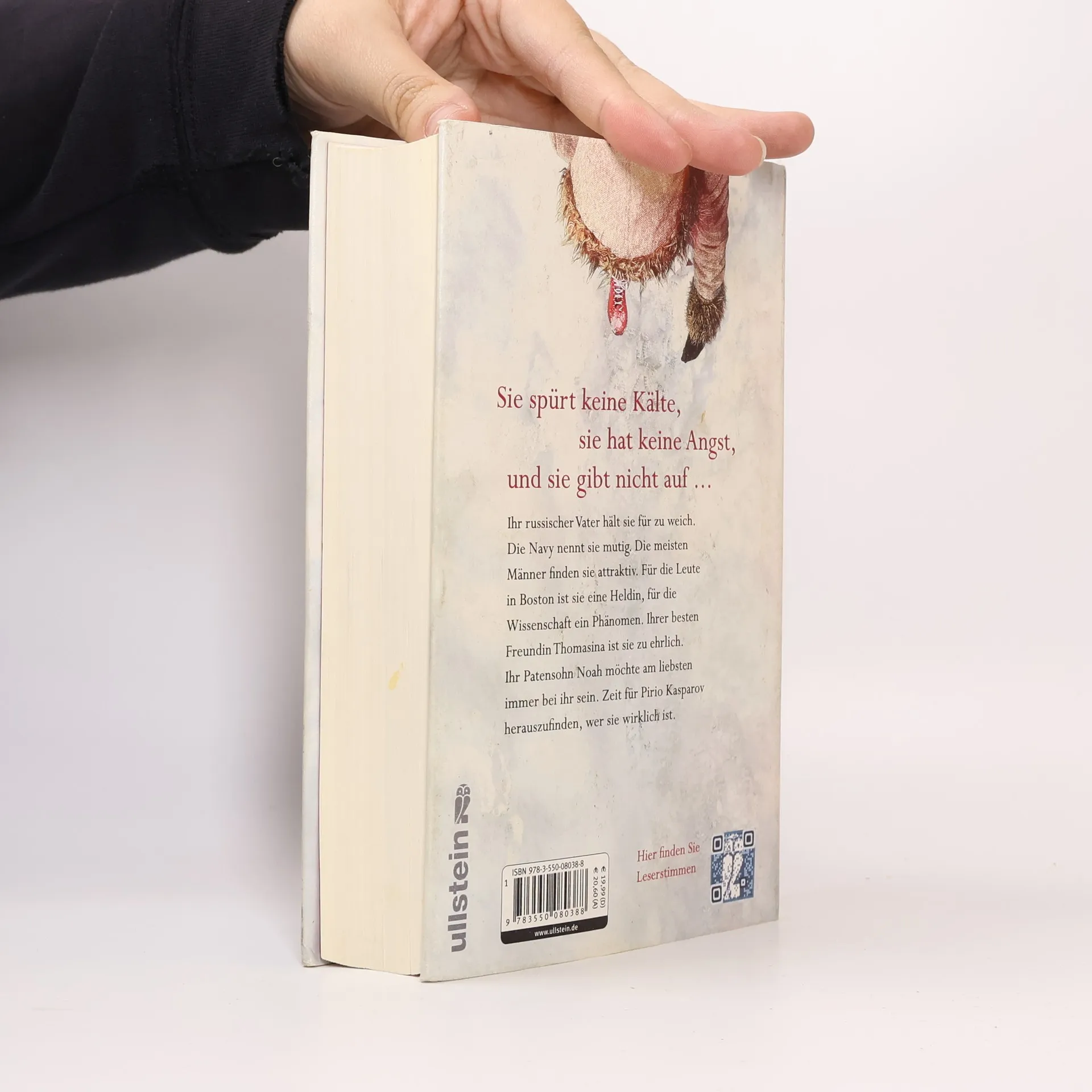 Ihr russischer Vater hält sie für zu weich. Die Navy nennt sie mutig. Die meisten Männer finden sie attraktiv. Für die Leute in Boston ist sie eine Heldin, für die Wissenschaft ein Phänomen. Ihrer besten Freundin Thomasina ist sie zu ehrlich. Ihr Patensohn Noah möchte am liebsten immer bei ihr sein. Zeit für Pirio Kasparov herauszufinden, wer sie wirklich ist. Pirio Kasparov fährt aus einem Alptraum hoch. Wieder schwimmt sie weit draußen vor der Küste Maines im Wasser. Wieder ist es kalt und dunkel. Wieder überlebt sie, und ihr Freund Ned wird nicht gefunden. Auch von seinem Fischerboot fehlt jede Spur. Und dann spürt sie wieder die Hand seines kleinen Sohnes Noah in ihrer, der nicht weint, weil er stark sein will. Pirio schwört sich herauszufinden, wer das getan hat. Wer hat den Frachter auf Kollisionskurs mit ihnen gebracht? Wer war der rätselhafte Mann auf Neds Beerdigung? Sie wird ihn finden. Für Noah. Für sich. Doch eine Frage beunruhigt sie: Warum? Wer war Ned wirklich? Und Pirio folgt Neds Gegnern von Sibirien über Nordkanada bis in die Baffin Bay in Alaska.