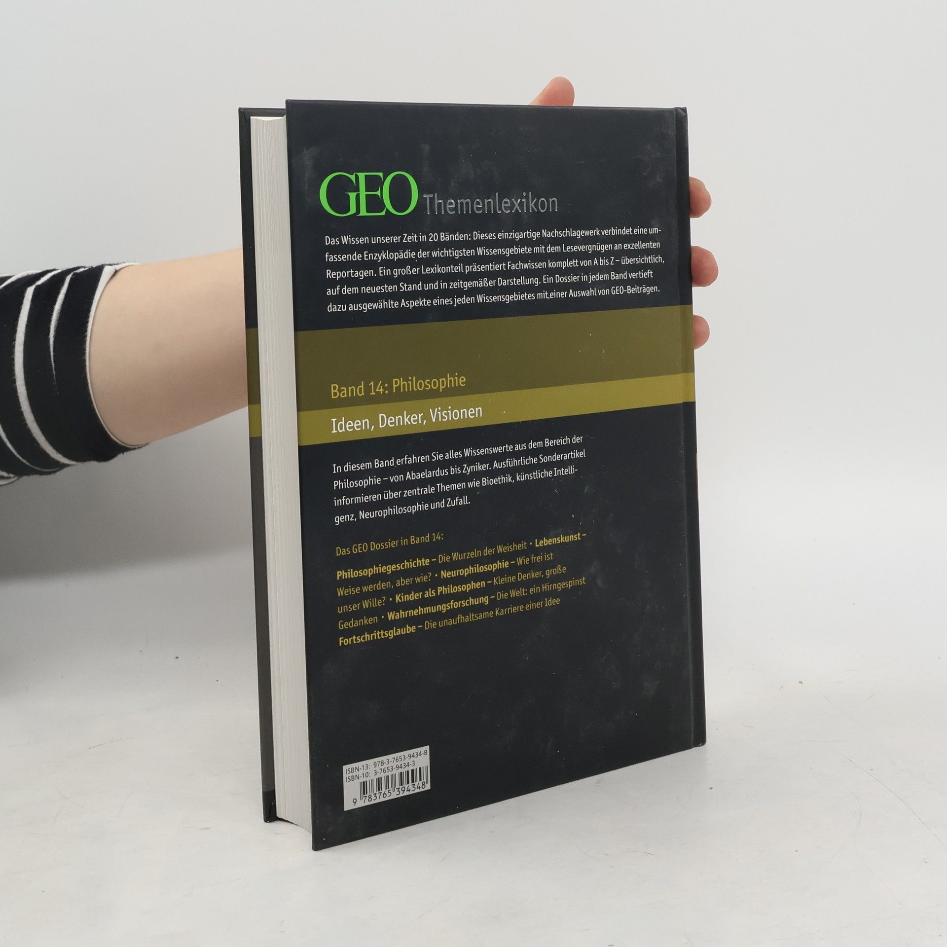 Das Wissen unserer Zeit in 20 Themenbänden: Dieses einzigartige und preisgünstige Nachschlagewerk ist eine Kooperation des Brockhaus-Verlages mit dem Reportagemagazin GEO und verbindet eine umfassende Enzyklopädie der wichtigsten Wissensgebiete mit dem Lesevergnügen an exzellenten Reportagen im GEO Dossier, das den alphabetischen Stichwortbestand eines jeden Bandes ergänzt. Band 14 beschäftigt sich mit dem Themenbereich 'Philosophie'.