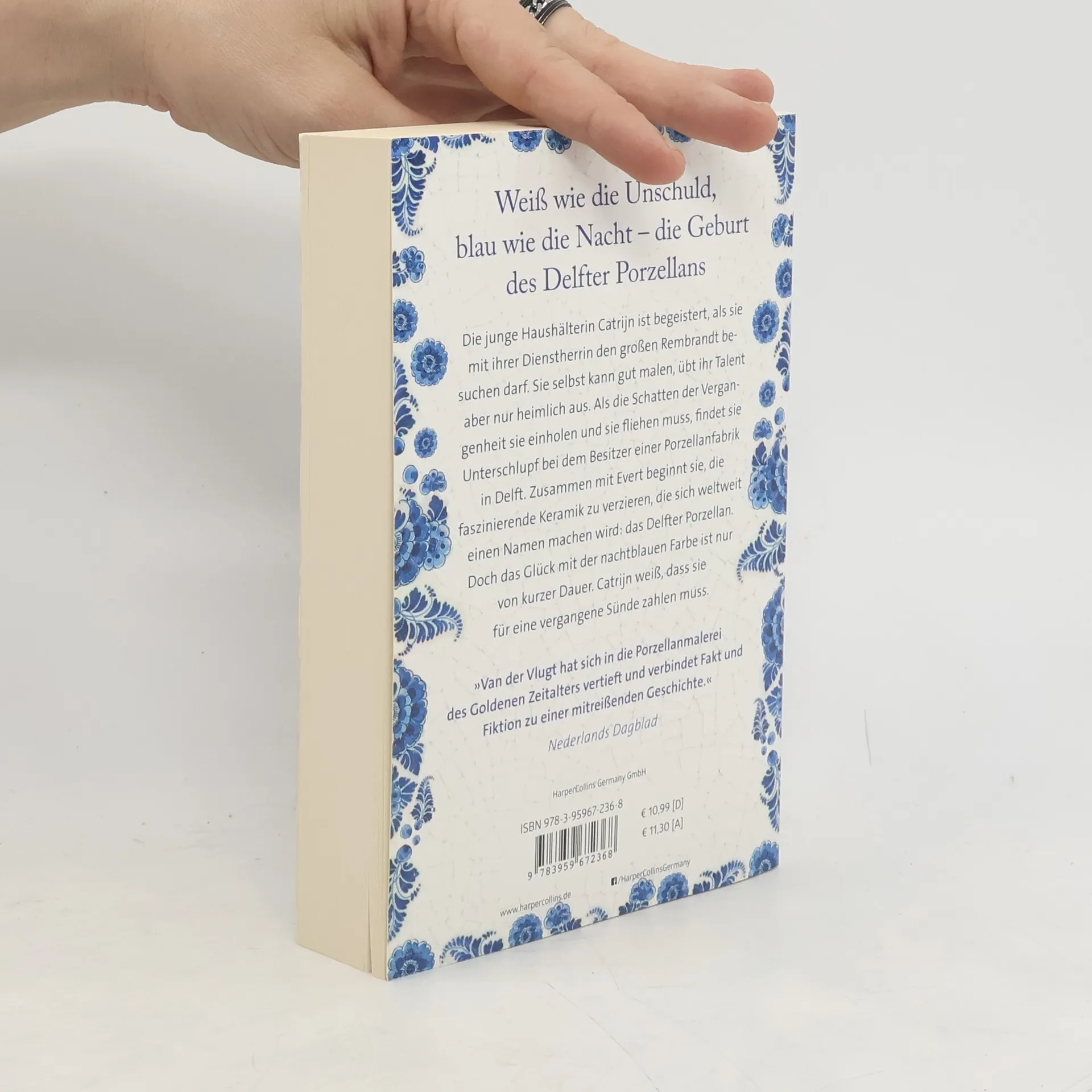 Die junge Haushälterin Catrijn ist begeistert, als sie mit ihrer Dienstherrin den großen Rembrandt besuchen darf. Sie selbst kann gut malen, übt ihr Talent aber nur heimlich aus. Als die Schatten der Vergangenheit sie einholen und sie fliehen muss, findet sie Unterschlupf bei dem Besitzer einer Porzellanfabrik in Delft. Zusammen mit Evert beginnt sie, die faszinierende Keramik zu verzieren, die sich weltweit einen Namen machen wird: Das Delfter Porzellan. Doch das Glück mit der nachtblauen Farbe ist nur von kurzer Dauer. Catrijn weiß, dass sie für eine vergangene Sünde zahlen muss. »Ein wunderbarer Roman über eine junge Frau aus dem 17. Jahrhundert und die faszinierende Entstehung des weiß-blauen Porzellans aus Delft.« Nederlands Dagblad »So macht Geschichte wieder Vergnügen.« Magriet »Van der Vlugt hat sich in die Porzellanmalerei des Goldenen Zeitalters vertieft und verbindet Fakt und Fiktion zu einer mitreißenden Geschichte.« Leidsch Dagblad