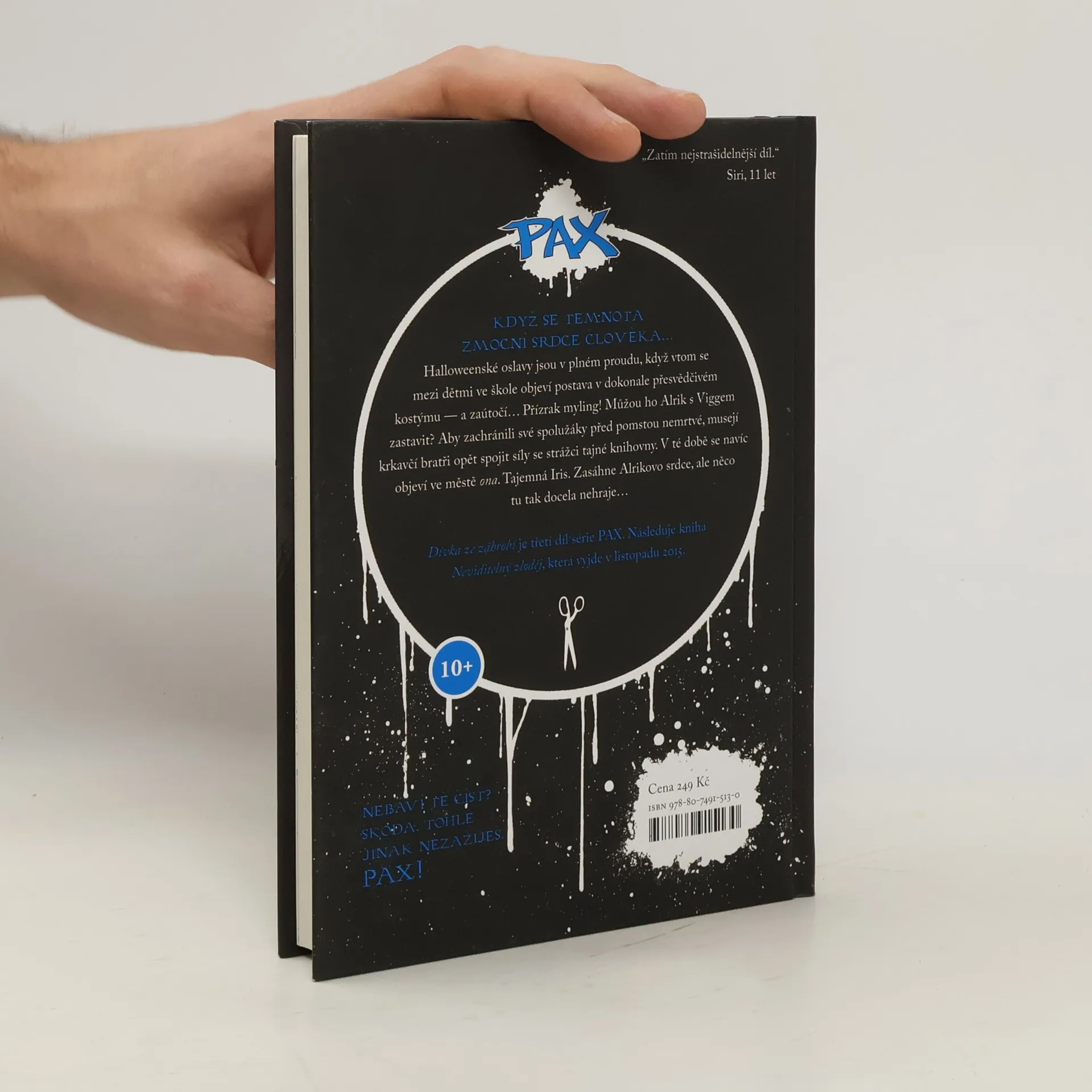 Třetí díl ze série PAX pro mladé čtenáře. Když se temnota zmocní srdce člověka… Halloweenské oslavy jsou v plném proudu, když vtom se mezi dětmi ve škole objeví postava v dokonale přesvědčivém kostýmu — a zaútočí… Přízrak myling! Můžou ho Alrik s Viggem zastavit? Aby zachránili své spolužáky před pomstou nemrtvé, musejí krkavčí bratři opět spojit síly se strážci tajné knihovny. V té době se navíc objeví ve městě ona. Tajemná Iris. Zasáhne Alrikovo srdce, ale něco tu tak docela nehraje…
