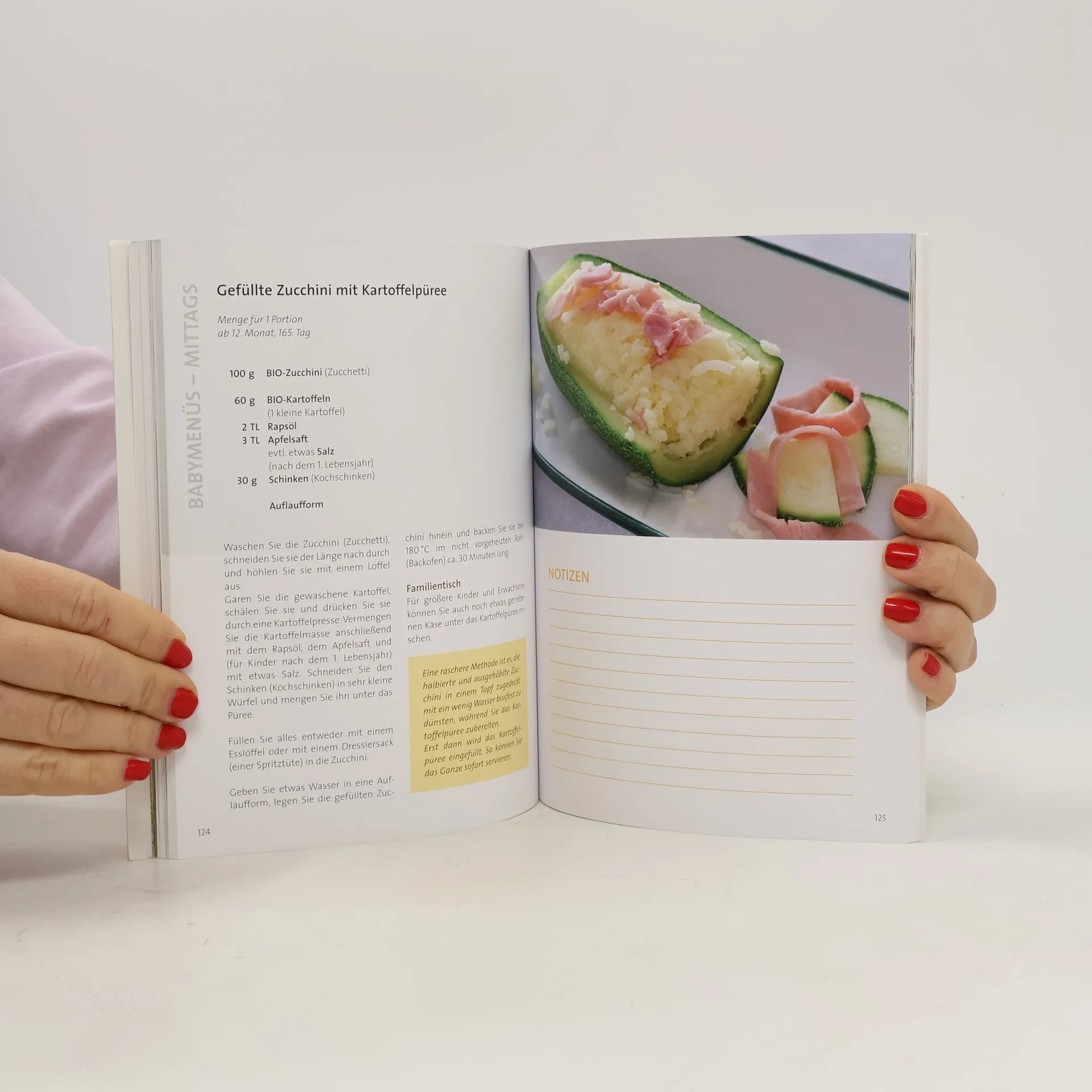 Ihr Kind greift nach allem auf Ihrem Teller und steckt alles in den Mund? Vielleicht kommen schon die ersten Zähnchen? Mit etwa einem halben Jahr signalisiert Ihr Kind den Wunsch nach Beikost. Es ist Zeit, zu entscheiden, ob Sie Gläschen füttern oder selbst kochen möchten. Selbst zubereitete Babybreie bieten den Vorteil von besserem Geruch und vielfältigerem Geschmack. Dieses Rezeptbuch erleichtert den Beikostbeginn mit einem „ABC der Zutaten“ und Saisonkalendern für Deutschland, Österreich und die Schweiz, die Ihnen bei der Auswahl saisonaler und babygerechter Zutaten helfen. Die „Rezepte auf Vorrat“ reduzieren den Aufwand bei der Zubereitung. Alle Rezepte sind ernährungswissenschaftlich für Babys zusammengestellt, einschließlich Öl- und Saftzugaben. Bei Allergiegefährdung bietet der Ratgeber Unterstützung für spezielle Bedürfnisse. Ein übersichtlicher Beikostplan mit Breirezepten und 30 Baby-Familien-Rezepten hilft Ihnen, neue Lebensmittel schrittweise einzuführen. Vegetarische Breie sind eine gesunde Alternative zum eisenreichen Gemüse-Fleisch-Brei. Der Ratgeber begleitet Sie über den Umstieg auf Familienkost hinaus und bietet eine köstliche Auswahl von „Kürbisgemüse aus dem Wok“ bis zum ersten „Geburtstagskuchen“.