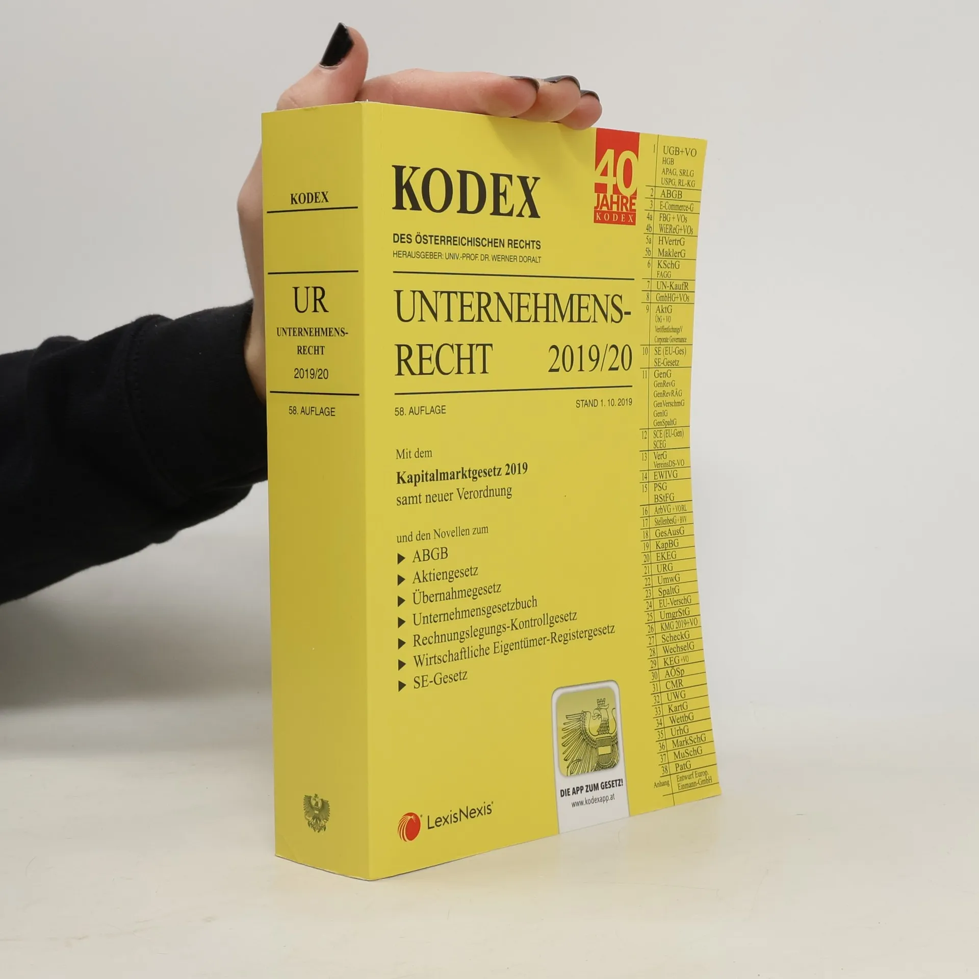Der Kodex Unternehmensrecht in der 58. Auflage mit dem Stand 1. 10. 2019 enthält: Mit dem Kapitalmarktgesetz 2019 samt neuer Verordnung und den Novellen zum ABGB Aktiengesetz Übernahmegesetz Unternehmensgesetzbuch Rechnungslegungs-Kontrollgesetz Wirtschaftliche Eigentümer-Registergesetz SE-Gesetz