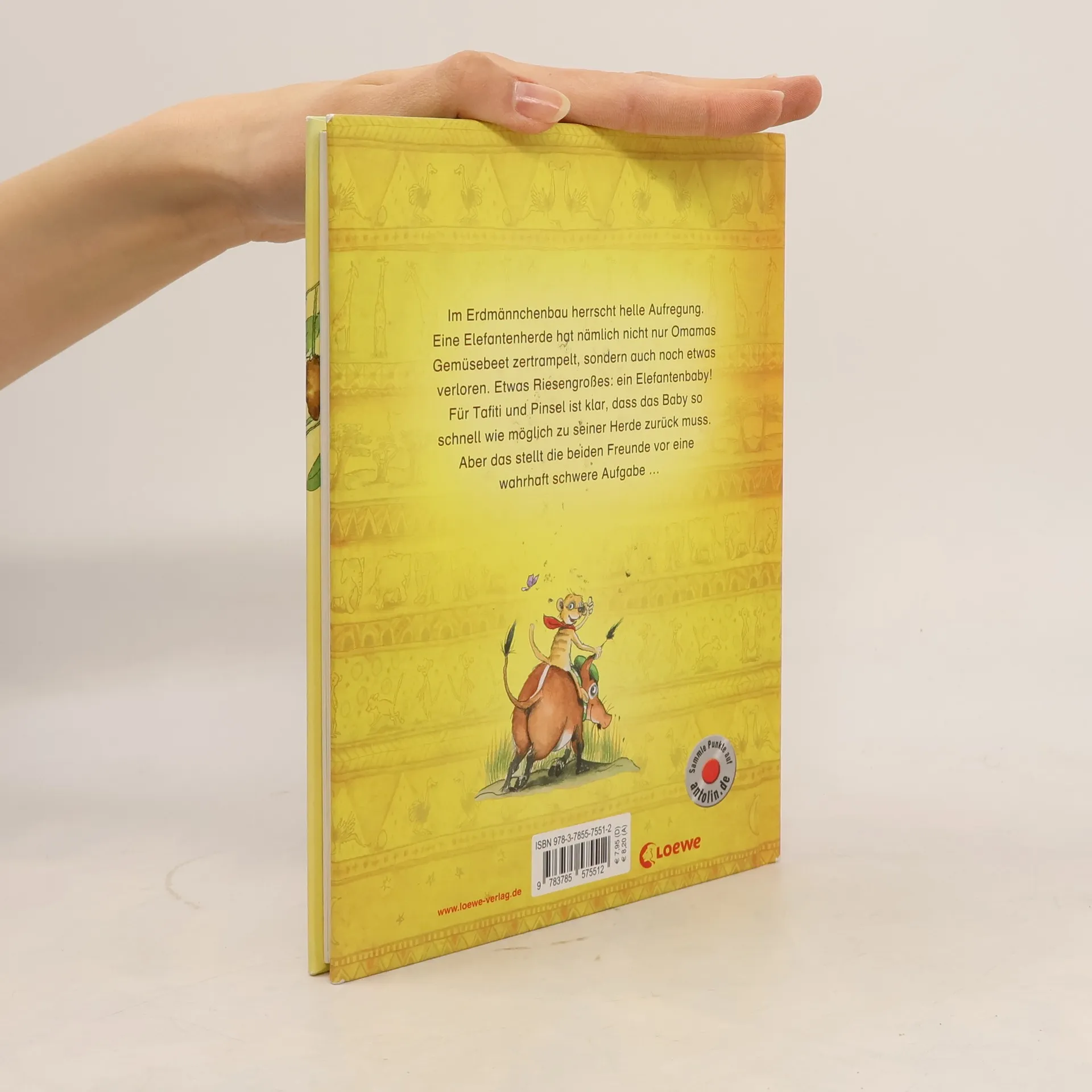 Das Buch ist bei deiner Buchhandlung vor Ort und bei vielen Online-Buchshops erhältlich! + Bücher, die Kinder gerne lesen wollen + Beliebtes Thema: Tiere + Ausgewogenes Text-Bild-Verhältnis + Große Schrift + Kurze Kapitel + Geeignet zum Vorlesen und ersten Selberlesen + Ideal zum Lesenlernen + Hochwertiges Hardcover + Mit vielen farbigen Illustrationen + Bereits über 450.000 verkaufte Tafiti-Bücher + Im Erdmännchenbau herrscht helle Aufregung. Eine Elefantenherde hat nämlich nicht nur Omamas Gemüsebeet zertrampelt, sondern auch noch etwas verloren. Etwas Riesengroßes: ein Elefantenbaby! Für Tafiti und Pinsel ist klar, dass das Baby so schnell wie möglich zu seiner Herde muss. Aber das stellt die beiden Freunde vor eine wahrhaft schwere Aufgabe ... Julia Boehme (bekannt durch Conni ) erzählt warmherzig vom kleinen Erdmännchen Tafiti , das zusammen mit seinen Freunden in Afrika jede Menge spannende Abenteuer erlebt. Ein Buch mit vielen bunten Bildern für Kinder ab 6 Jahren zum Vorlesen. Mehr über Tafiti und tollen Mitmach-Spaß für zu Hause findest du auf www. tafitiswelt. de.