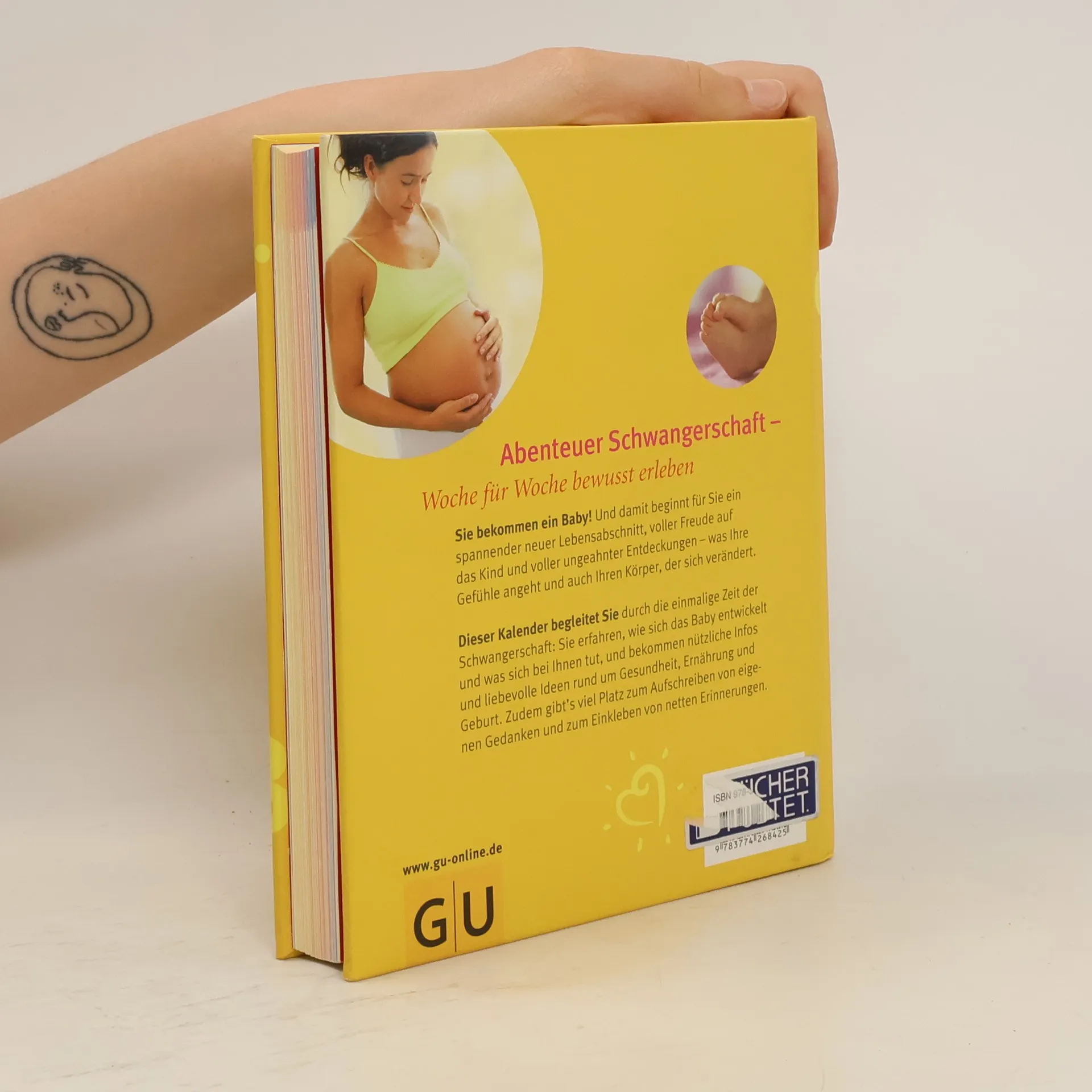 Dieser Kalender begleitet die werdende Mutter Woche für Woche durch die Schwangerschaft. Darin findet sie für die 40 Wochen, in denen das Kind im Bauch wächst, nette und nützliche Anregungen und kann sich aufs Baby freuen und vorbereiten. Ganz klar wochenweise strukturiert, informiert das Buch über die Entwicklung bei Mutter und Baby, bietet Platz für eigene Notizen und Gefühle, für Fragen an den Frauenarzt, zum Einkleben von Erinnerungsfotos und Ultraschallbildern. Außerdem gibt es jede Woche ein zeitlich passendes Spezialthema, zum Beispiel zu ärztlichen Untersuchungen, Sport, Sex, „Nestbau“, Erstausstattung, Namenswahl und Geburtsvorbereitung.