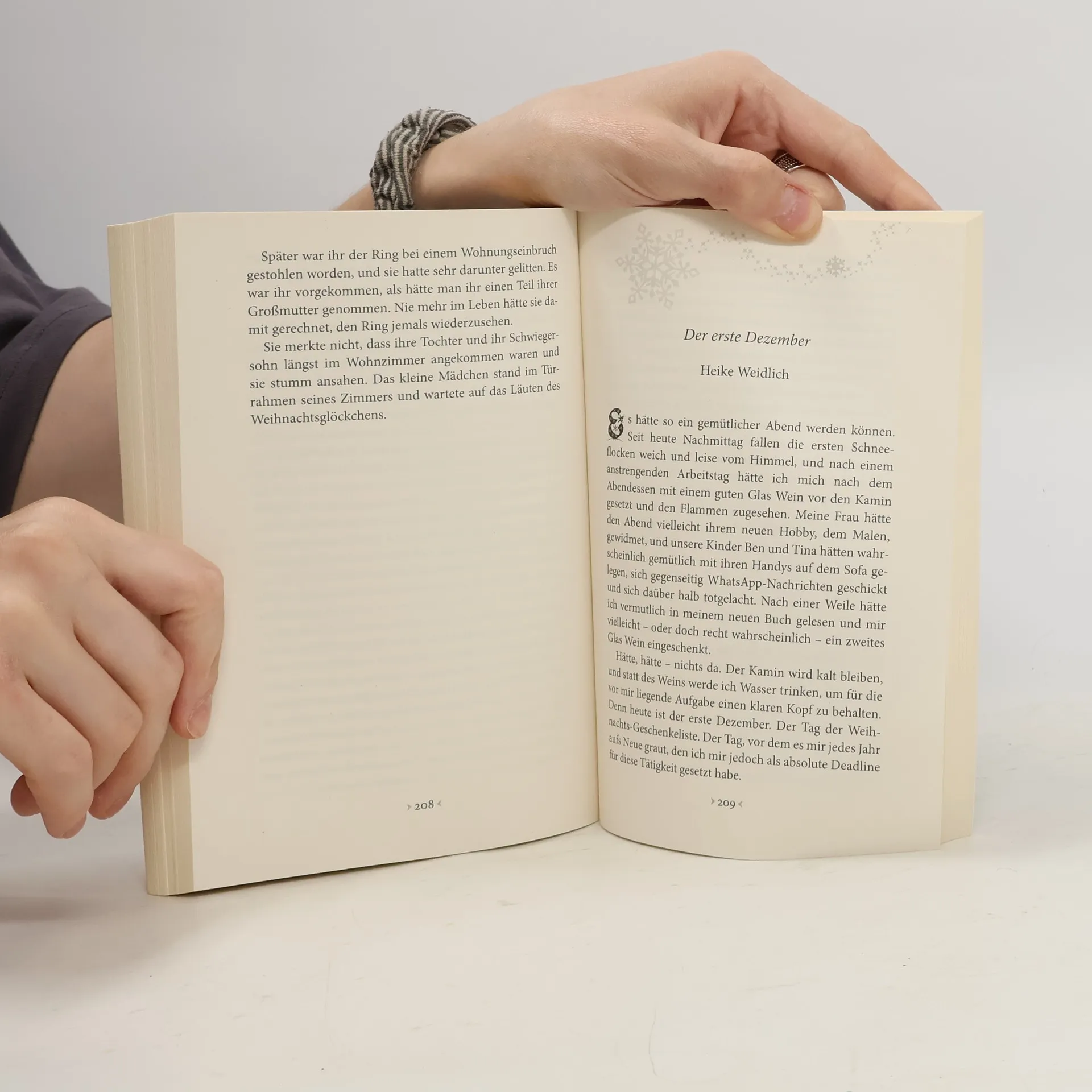 Wirklich, ist es schon wieder so weit? Es fehlt doch noch der Fensterschmuck, die Karten müssen geschrieben, der Weihnachtsbaum soll gekauft, herbeigeschleppt, aufgestellt und geschmückt werden. Wer packt die Geschenke ein? Wer besorgt das Essen? Wer putzt noch schnell die Fenster? Die Kinder sind schon wieder mit dreckigen Stiefeln in die Stube gestapft! Aber schau, da sitzen sie und blättern in ihrem Weihnachtsbuch. Mutter, Vater, Oma, Opa und Freunde. Setzt euch dazu. Es ist Weihnachten.