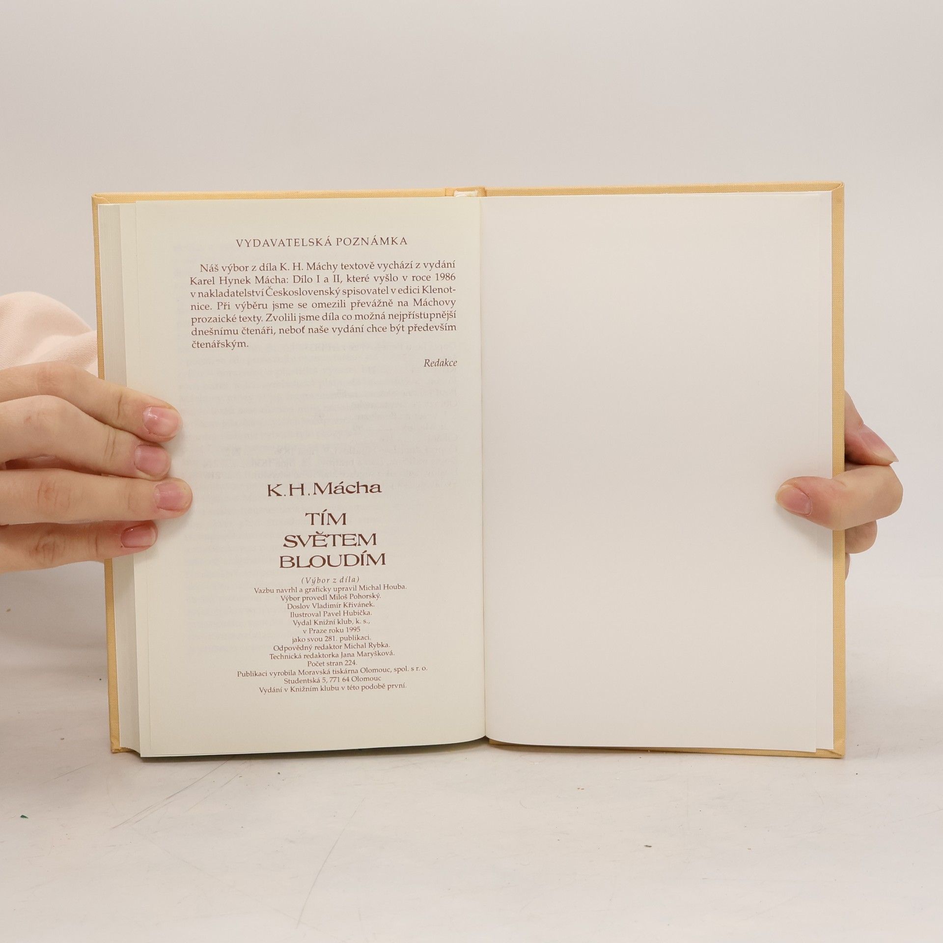 Výbor obsahuje: Máj, Křivoklad, Pouť krkonošská, Večer na Bezdězu, Márinka, Cikáni, dopis Janu Benešovi, E. Hindlovi, rodičům, Lori a bratrovi.