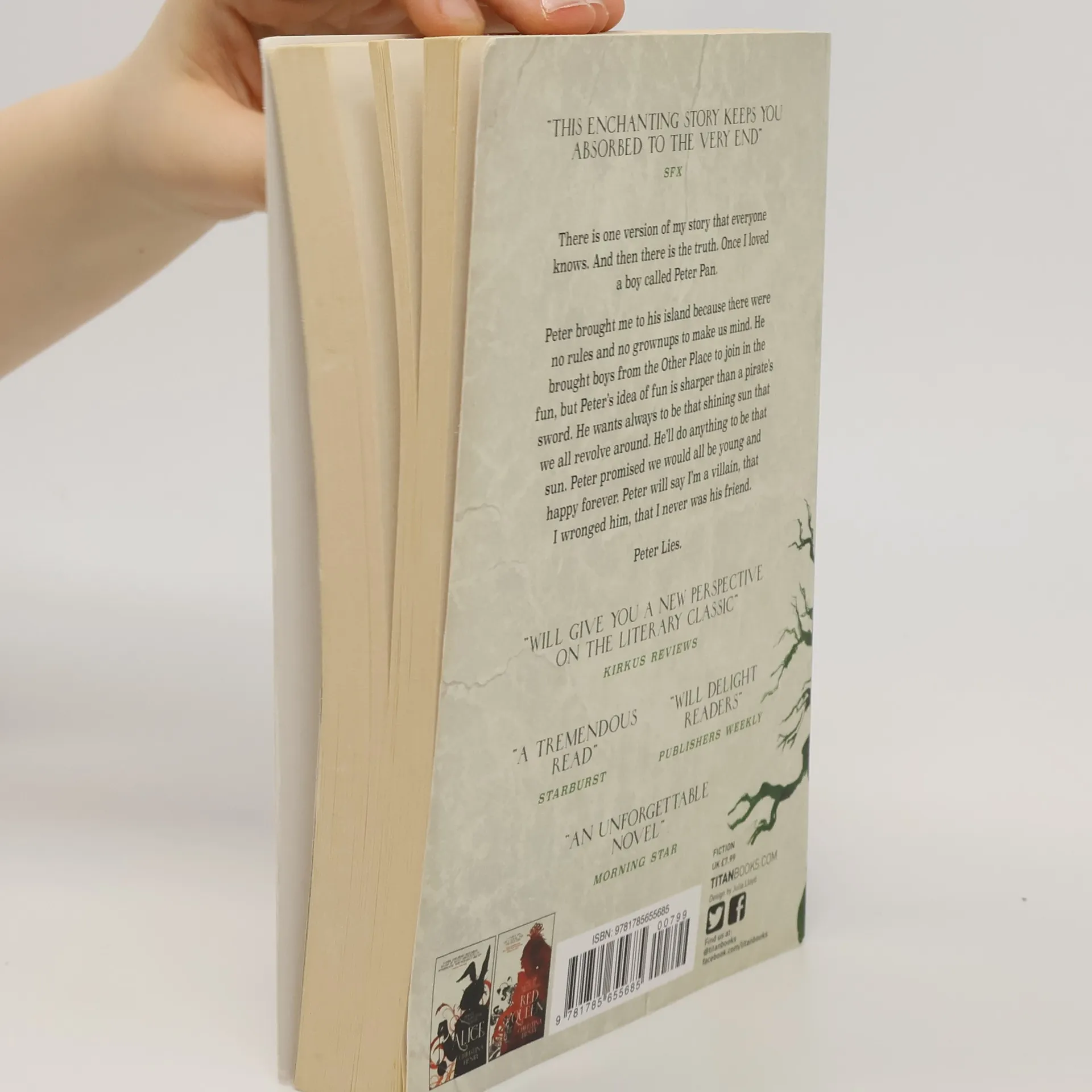 The author of Alice takes readers through a dark tale of Peter Pan, who turns his best friend into his nemesis, Captain Hook. On an island lives a boy called Peter and his band of merry lost boys, young forever. That is, unless they get sick or killed by pirates or eaten by crocodiles or unless--inexplicably--they grow old. For some of them do grow old, and nobody knows why. One of these boys is called Jamie, and he was the first boy that Peter ever brought to the island. Jamie's lived there for longer than he can remember, and it's not all fun and games. Peter thinks the boys are replaceable, that if one dies or grows up, he can swap in another from the Other Place, the place where he collects new playmates. Jamie looks out for the boys and takes care of them. He does everything Peter does not. Jamie tries to keep them alive because, to him, they matter. When Peter steals a boy who is too young, Jamie takes the boy under his wing. But Peter won't have that, for nobody will ever take Jamie from him. Ever.
