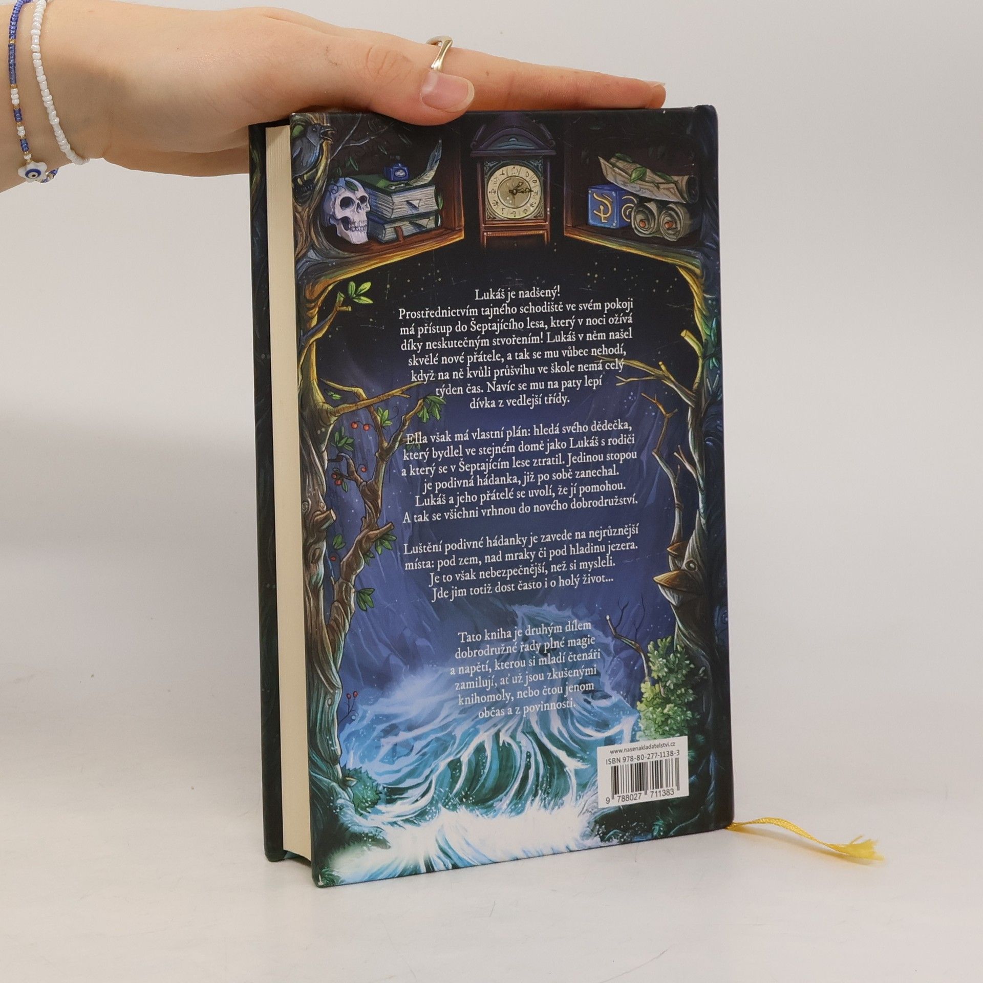 Lukáš je nadšený: Prostřednictvím tajného schodiště ve svém pokoji má přístup do Šeptajícího lesa, který v noci ožívá díky neskutečným stvořením! Lukáš v něm našel skvělé nové přátele, a tak se mu vůbec nehodí, když na ně kvůli průšvihu ve škole nemá celý týden čas. Navíc se mu na paty lepí dívka z vedlejší třídy.Ella však má vlastní plán: hledá svého dědečka, který bydlel ve stejném domě jako Lukáš s rodiči a který se v Šeptajícím lese ztratil. Jedinou stopou je podivná hádanka, kterou po sobě zanechal. Lukáš a jeho přátelé se uvolí, že jí pomohou. A tak se všichni po hlavě vrhnou do nového dobrodružství.Luštění podivné hádanky je zavede na nejrůznější místa: pod zem, nad mraky či pod hladinu jezera. Je to však nebezpečnější, než si mysleli... Jde jim totiž dost často i o holý život.