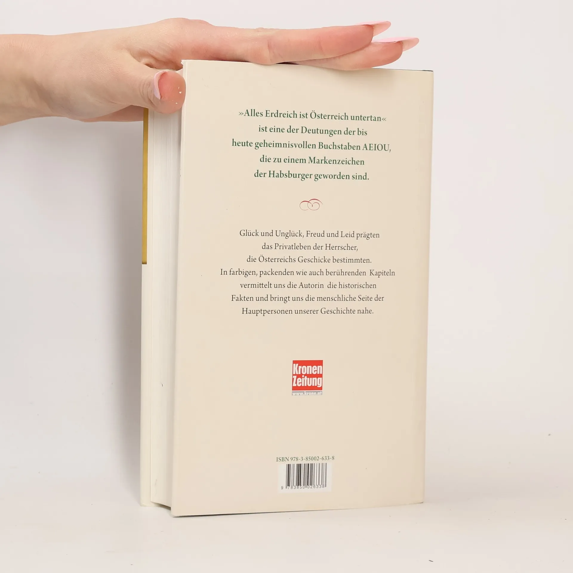„Alles Erdreich ist Österreich untertan” ist eine der Deutungen der bis heute geheimnisvollen Buchstaben AEIOU, die zu einem Markenzeichen der Habsburger geworden sind. Glück und Unglück, Freud und Leid prägten das Privatleben der Herrscher, die Österreichs Geschicke bestimmten. In farbigen, packenden wie auch berührenden Kapiteln vermittelt uns die Autorin die historischen Fakten und bringt uns die menschliche Seite der Hauptpersonen unserer Geschichte nahe.