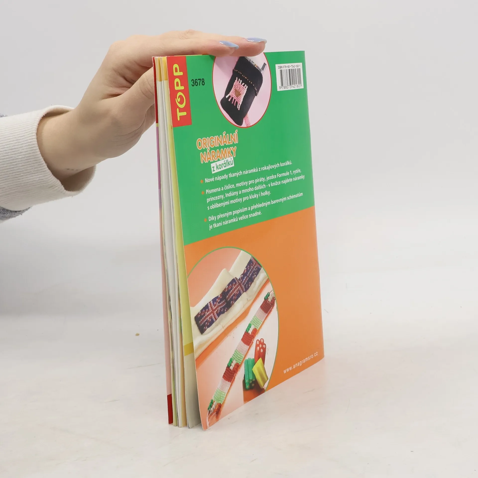 Originální náramky z korálků je výtvarná příručka z edice TOPP nakladatelství Anagram. Nové nápady tkaných náramků z rokajlových korálků. Písmena a číslice, motivy pro piráty, jezdce Formule 1, rytíře, princezny, Indiány a mnoho dalších, v knížce najdete náramky z korálků s oblíbenými motivy pro kluky i holky. Díky přesným popisům a přehledným barevným schématům je tkaní korálkových náramků velice snadné.