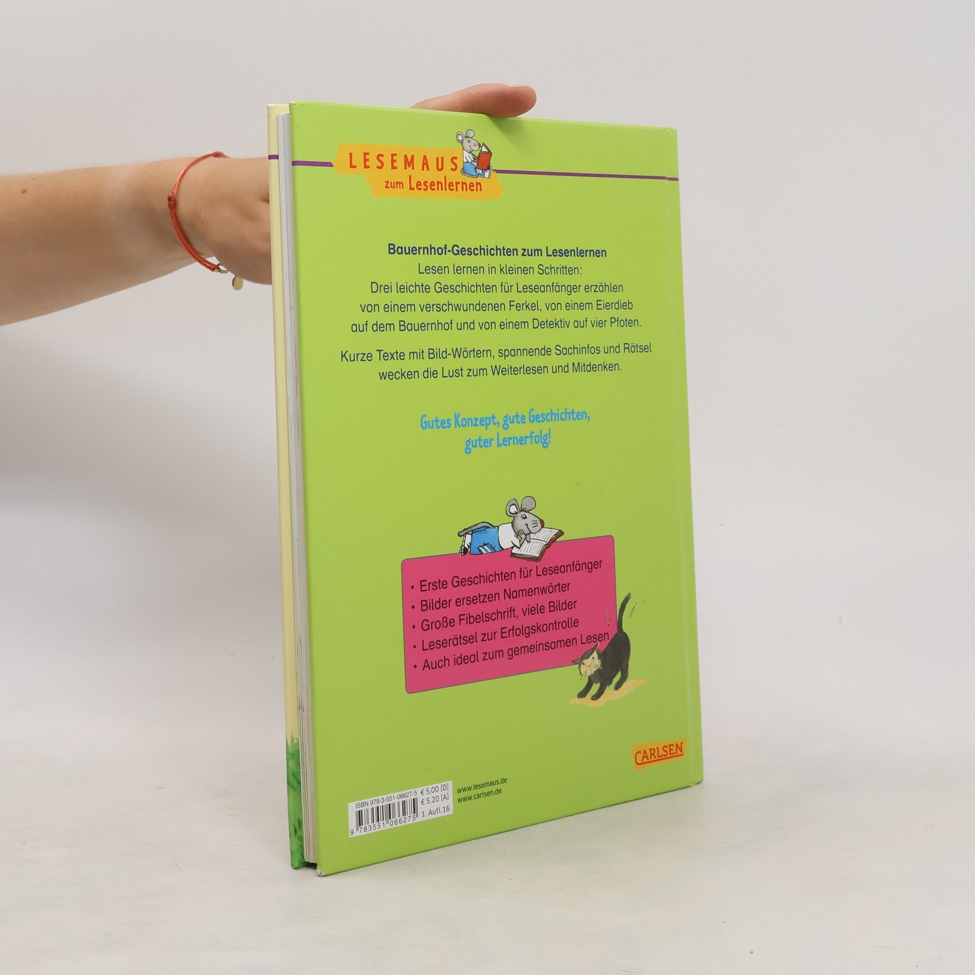 Lesen lernen in kleinen Schritten: Drei leichte Geschichten für Leseanfänger erzählen von einem verschwundenen Ferkel, von einem Eierdieb auf dem Bauernhof und von einem Detektiv auf vier Pfoten. Kurze Texte mit Bild-Wörtern, spannende Sachinfos und Rätsel wecken die Lust zum Weiterlesen und Mitdenken. Gutes Konzept, gute Geschichten, guter Lernerfolg! Erste Geschichten für Leseanfänger Bilder ersetzen Namenwörter Große Fibelschrift, viele Bilder Leserätsel zur Erfolgskontrolle Auch ideal zum gemeinsamen Lesen Enthält folgende Geschichten: Milla und das verschwundene Ferkel Milla und der freche Eierdieb Milla und der tapsige Detektiv