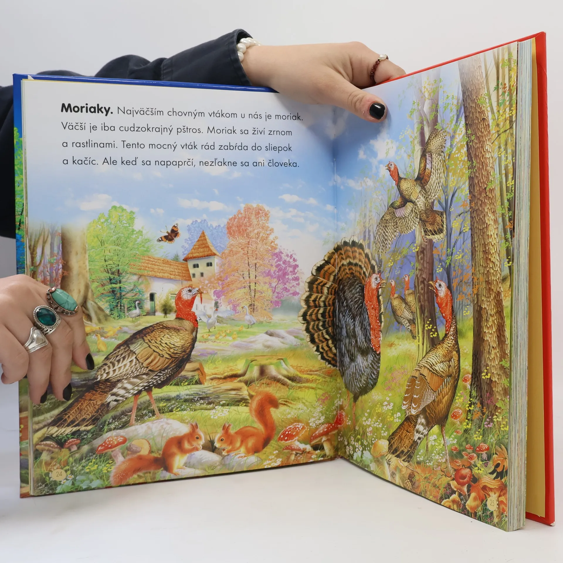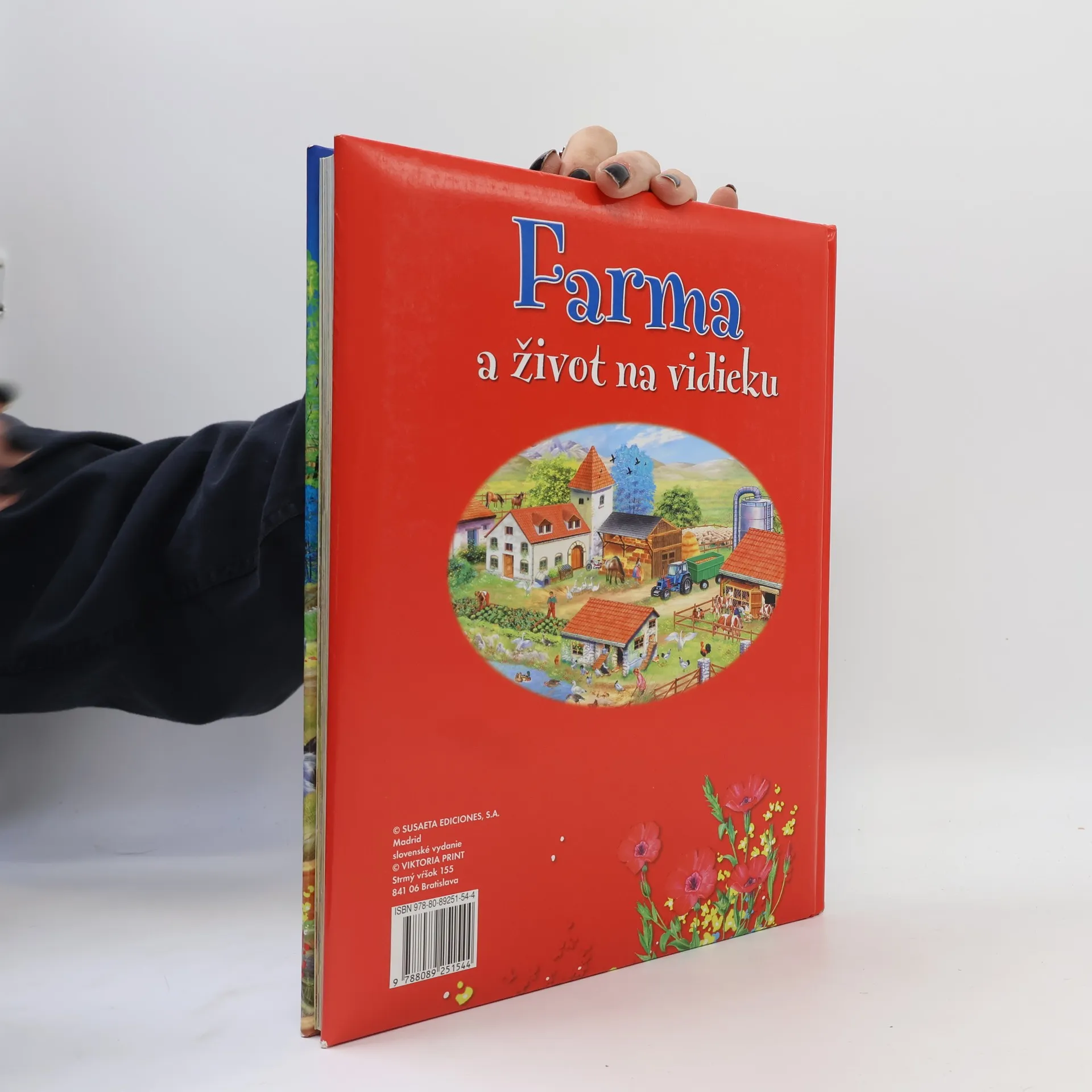 Prekrásne ilustrovaná kniha o živote ľudí a zvierat na farmách po celom svete. Kapitoly: Farma, Na farme, Kurín, Chov hydiny, Zlodejka sliepok, Jazierko na farme, Už sú tu !, Perie, Husi, Moriaky, Veselé Vianoce !, Domáce králiky, Pozor, poľovníci !, Chliev, Mliečne prasiatka, Plemená ošípaných, Pasenie oviec, Návrat oviec, Z ovce sa získava..., Prechádzka farmou, Veľká prekážka, Cesta do dediny, Z kozy sa využíva..., V horách, Zber mlieka, Z kravy sa získava..., Pozor, nebezpečie !, Trh, Deň na trhu, Strážca farmy, Rodina sa rozrastá, Mačky, Vtáky, Kačice, Zvieratá na všetko, Zviera, čo sa zatne ako somár, Najvytrvalejší ťahač vody, Mytologické kone, Najlepší priateľ človeka ?, Konská doprava, Šport a zábava, Konské plemená, Vitajte v stajni !, Mustangy, Chov dobytka v Amerike, Ťažné zvieratá, Ručná orba, Mechanická orba, Sejba, Mlátenie obilia v minulosti, Kombajn, Poľnohospodárske stroje, Cukor, Zemiaky, Zber olív, Slnečnica, Kukurica, Ako sa pečie chlieb ?, Vinobranie, Šliapanie hrozna, Záhradka, Klíčenie, Urob si pokus so semienkami, Daždivé dni, Využitie lesa, Zima sa dá vhodne využiť, Zvieratá bez domova ?, Ochrana úrody, Pesticídy, Prírodné katastrofy, Škodcovia, Mikroklíma, Druhy ovocia, Ovocné stromy, Konzervovanie, Kakao, čaj, a káva, Včely a med, Včelárstvo.