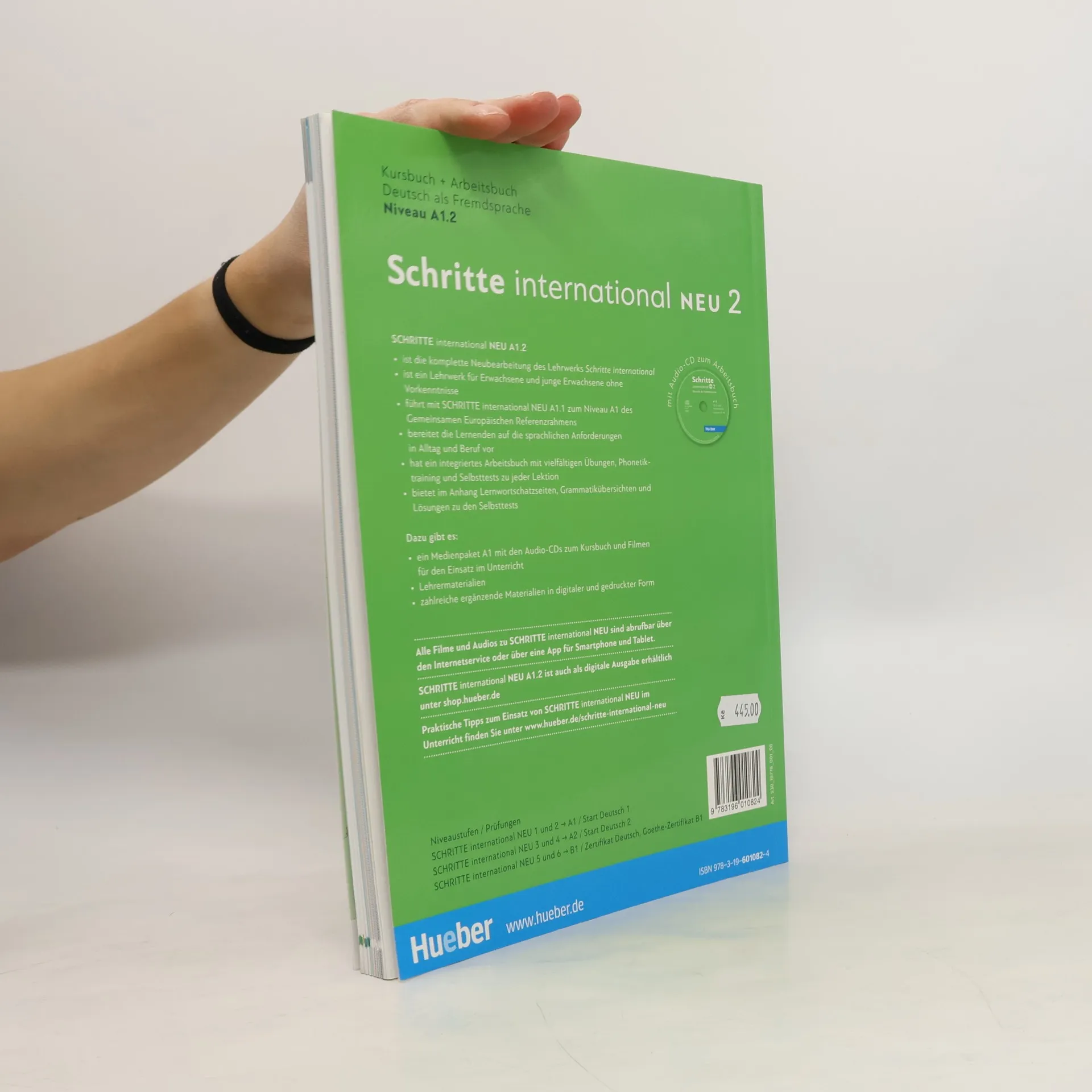 Zielniveau A1/2 Kursbuchteil - alle Lektionen folgen einem klaren Aufbau fur hohe Lerntransparenz - neue Foto-Horgeschichten als Einstieg in jede Lektion - interessante Texte und vielfaltige Landeskunde - induktive Grammatik fordert Bewusstmachung und Verstandnis - Vorbereitung auf den Berufsalltag durch verstarkten Berufsbezug - Starkung der Lernerautonomie durch eine Doppelseite zu Grammatik und Redemitteln mit ubungen und Lernhilfen am Ende jeder Lektion - Transparenz durch Lernziele mit der Moglichkeit zur Selbsteinschatzung - flexible Erganzung der Lektionsinhalte durch die "Zwischendurch mal ...-Seiten" - alle Audiodateien und Filme zum Kursbuch uber mobile Gerate (Smartphone, Tablet-PC) abrufbar mit kostenloser App Arbeitsbuchteil - ubungen und Wiederholungsubungen in verschiedenen Schwierigkeitsstufen zur Binnendifferenzierung - ein systematisch aufgebautes Schreibtraining - Wortschatztraining fur einen gezielten Wortschatzerwerb - ein ausfuhrliches Phonetikprogramm - Aufgaben zum Mehrsprachigkeitsansatz - Prufungsaufgaben - Lernertests mit Selbstauswertung und weiterfuhrendem Trainingsprogramm im Lehrwerkservice - integrierte Fokus-Seiten bieten zahlreiche zusatzliche Materialien zu den Themen Beruf und Alltag. - Lernwortschatz-Seiten am Ende des Buches mit Illustrationen und Beispielsatzen, Schreibzeilen und Lerntipps - eine systematische Grammatik-ubersicht im Anhang