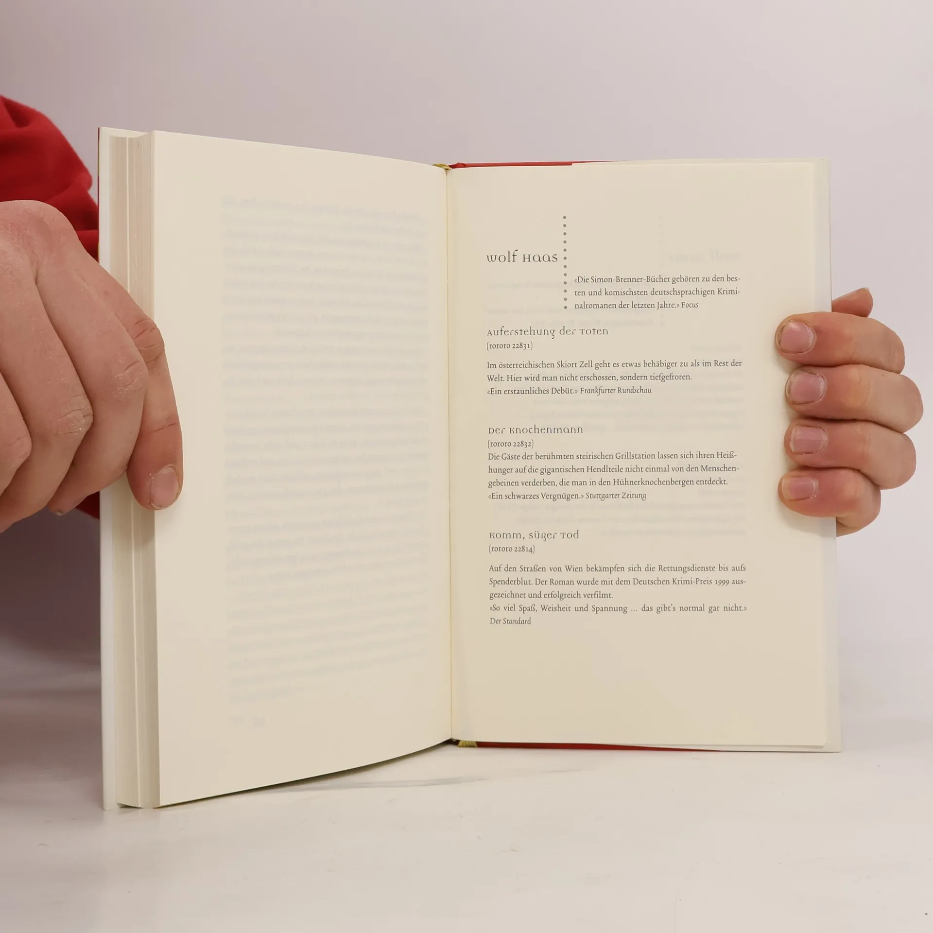 Wolf Haas wurde 1960 in Maria Alm am Steinernen Meer geboren und veröffentlichte 1996 mit «Auferstehung der Toten» den ersten der sieben Brenner-Krimis. Seine Bücher wurden in mehrere Sprachen übersetzt und unter anderem mit dem Deutschen Krimipreis, dem Burgdorfer Krimipreis, dem Literaturpreis der Stadt Wien und dem Wilhelm-Raabe-Preis ausgezeichnet. Wolf Haas lebt als freier Autor in Wien.