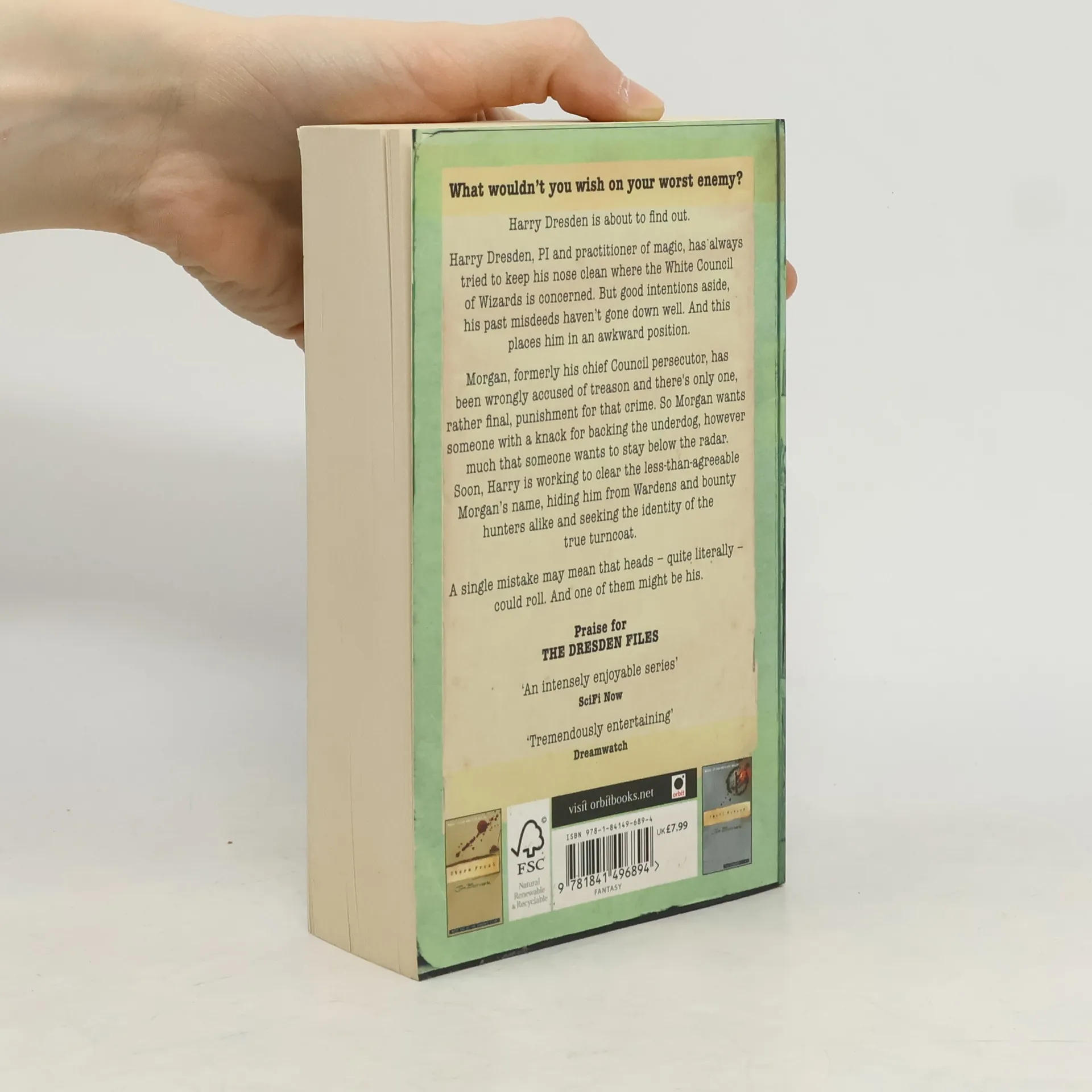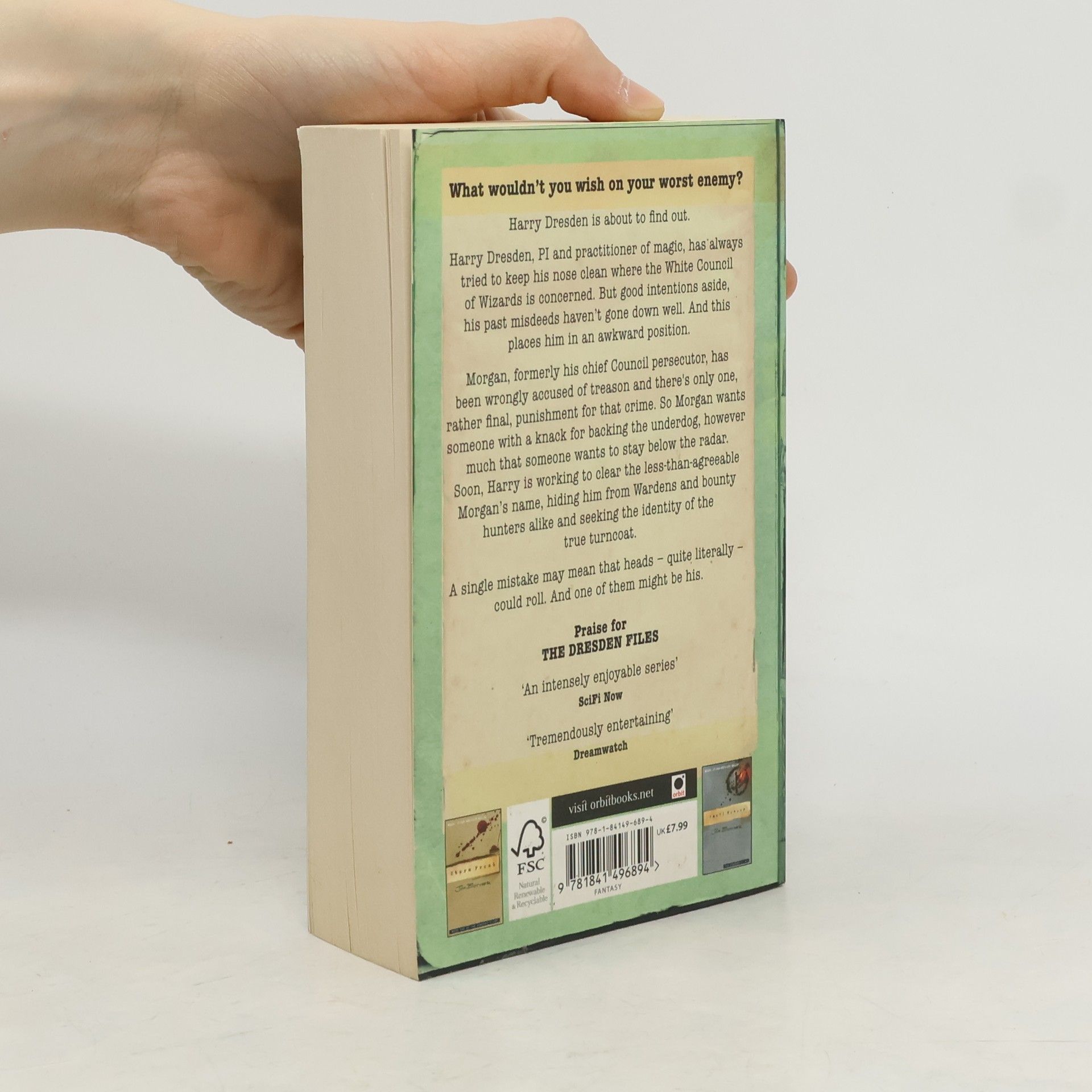 Harry Dresden, professional wizard, has done his best to keep his nose clean where the White Council of Wizards is concerned. Even so, his past misdeeds have cast a constant shadow of suspicion over him in the eyes of the Wardens, those wizards responsible for enforcing the Laws of Magic. Now Dresden finds himself faced with a nightmarish dilemma: Morgan, formerly his chief persecutor among the Wardens, has been wrongly accused of treason against the White Council - and has come to Harry for help. Dresden faces a daunting task: clear Morgan's name while simultaneously hiding him from the Wardens and the supernatural bounty hunters sent to find him, discovering the identity of the true turncoat and, of course, avoiding accusations of treachery of his own. A single mistake may mean that heads - quite literally - will roll. And one of them could be his own . . .