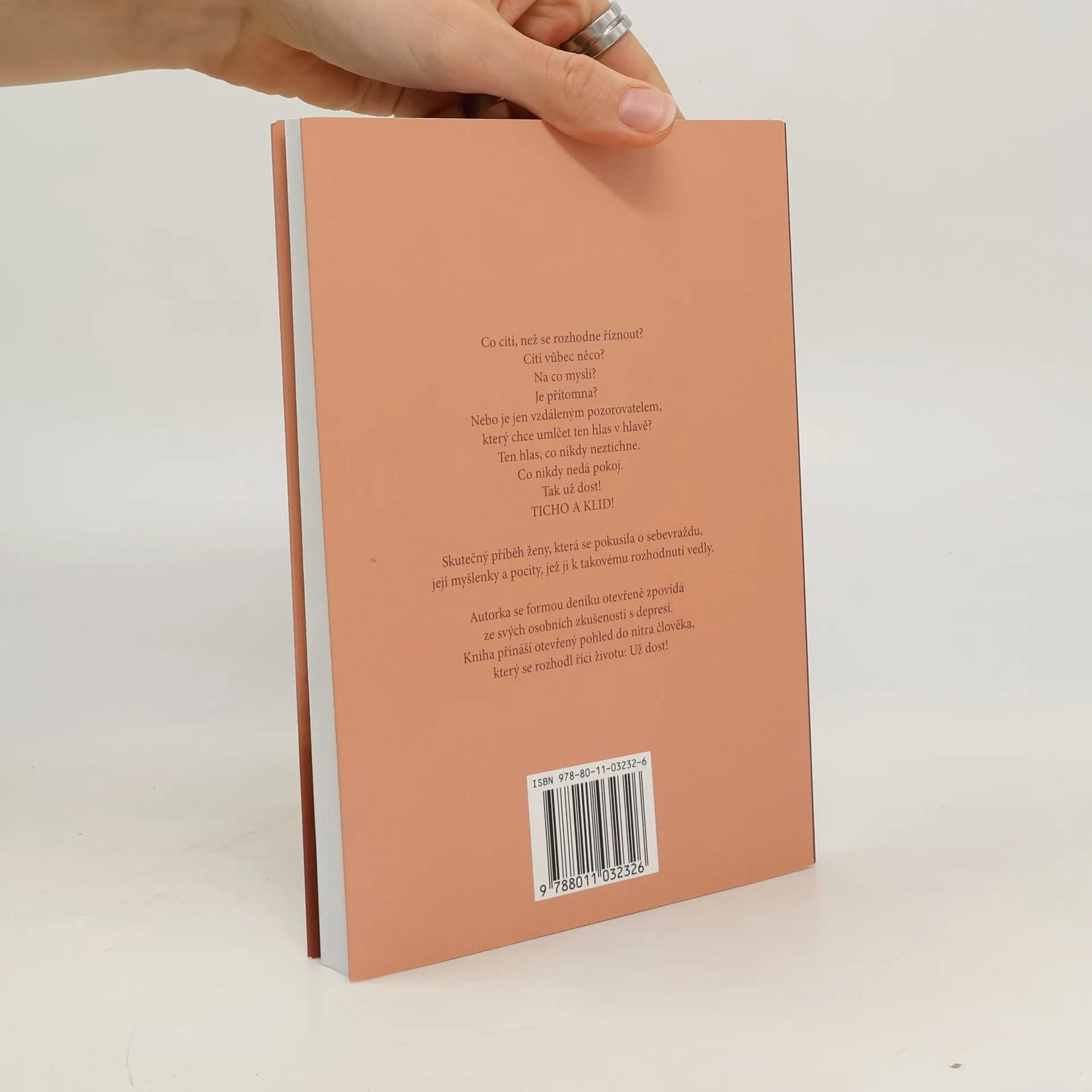 Skutečný příběh ženy, která se pokusila o sebevraždu, její myšlenky a pocity, jež ji k takovému rozhodnutí vedly. Autorka se formou deníku otevřeně zpovídá ze svých osobních zkušeností s depresí.Kniha přináší otevřený pohled do nitra člověka, který se rozhodl říci životu: Už dost!