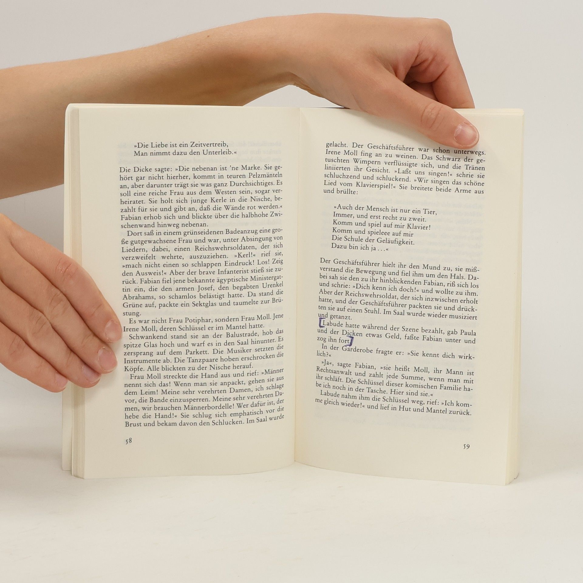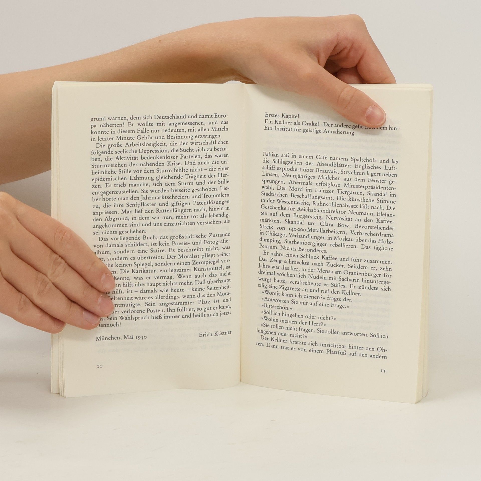 Bissig und schonungslosEine brillante und provokante Großstadtsatire im Berlin der frühen 30er Jahre. »Satirischer Roman von Erich Kästner, erschienen 1931. - Das Werk gilt als eine der brillantesten Satiren auf deutsche, insbesondere Berliner Zustände am Ende der zwanziger Jahre und während der großen Wirtschaftskrise um 1930. Titelheld ist der zweiunddreißigjährige Germanist Dr. Jakob Fabian, bisher Adressenschreiber, nun Reklametexter für eine Zigarettenfirma, ein »zarter Ironiker«, der »auf den Sieg der Anständigkeit wartet«, nicht gerade lebenstüchtig ist und von den Menschen immer wieder übervorteilt wird.«