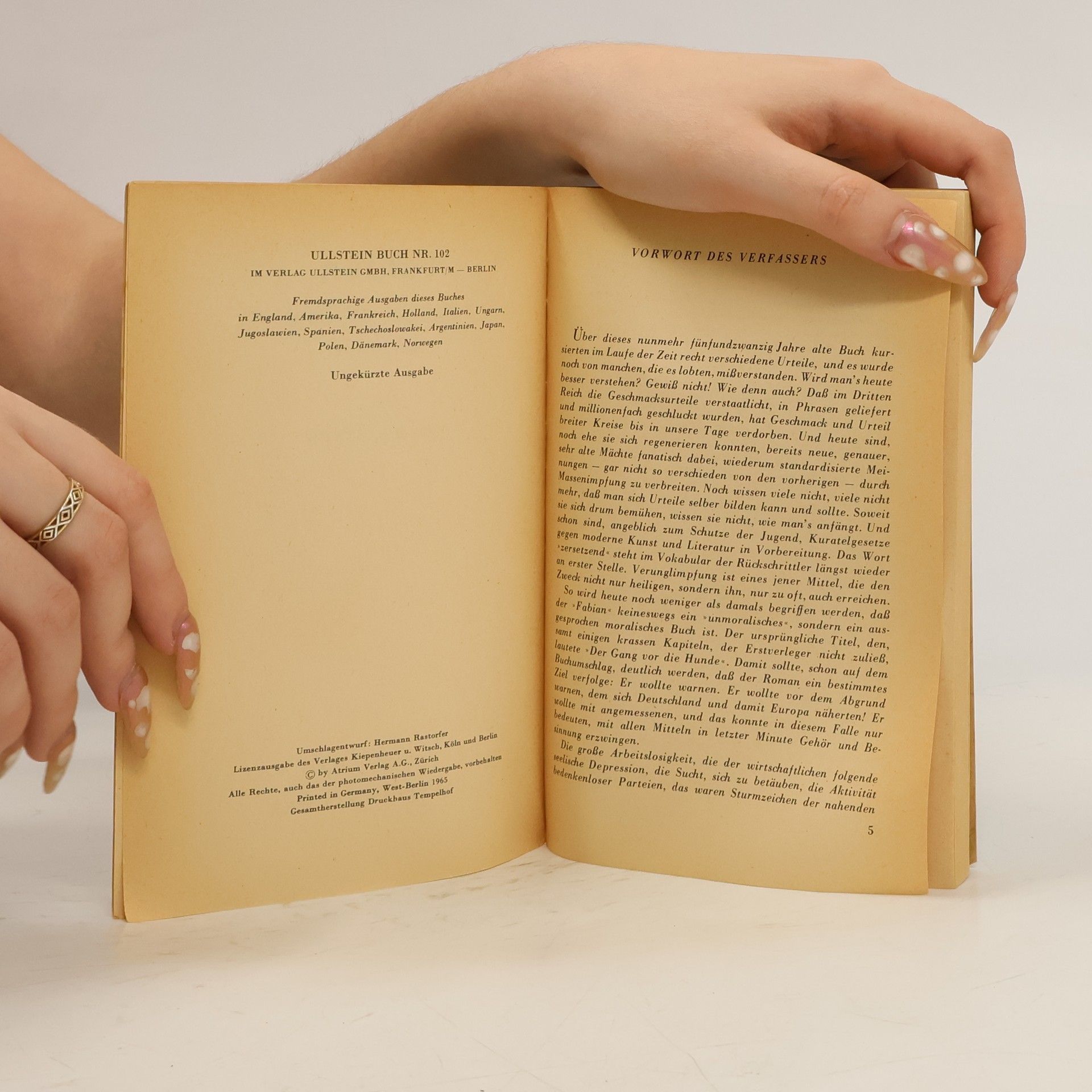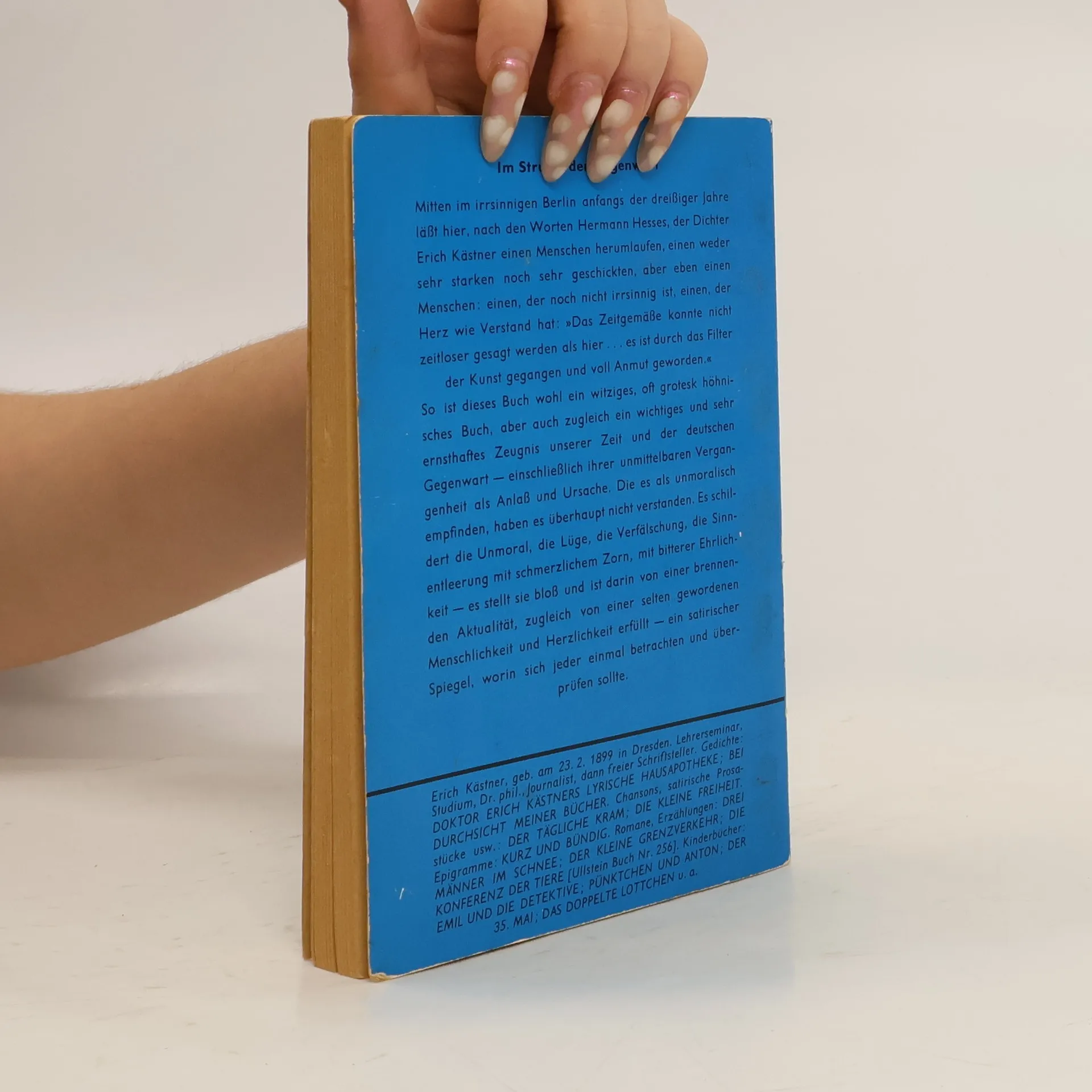 Bissig und schonungslosEine brillante und provokante Großstadtsatire im Berlin der frühen 30er Jahre. »Satirischer Roman von Erich Kästner, erschienen 1931. - Das Werk gilt als eine der brillantesten Satiren auf deutsche, insbesondere Berliner Zustände am Ende der zwanziger Jahre und während der großen Wirtschaftskrise um 1930. Titelheld ist der zweiunddreißigjährige Germanist Dr. Jakob Fabian, bisher Adressenschreiber, nun Reklametexter für eine Zigarettenfirma, ein »zarter Ironiker«, der »auf den Sieg der Anständigkeit wartet«, nicht gerade lebenstüchtig ist und von den Menschen immer wieder übervorteilt wird.«