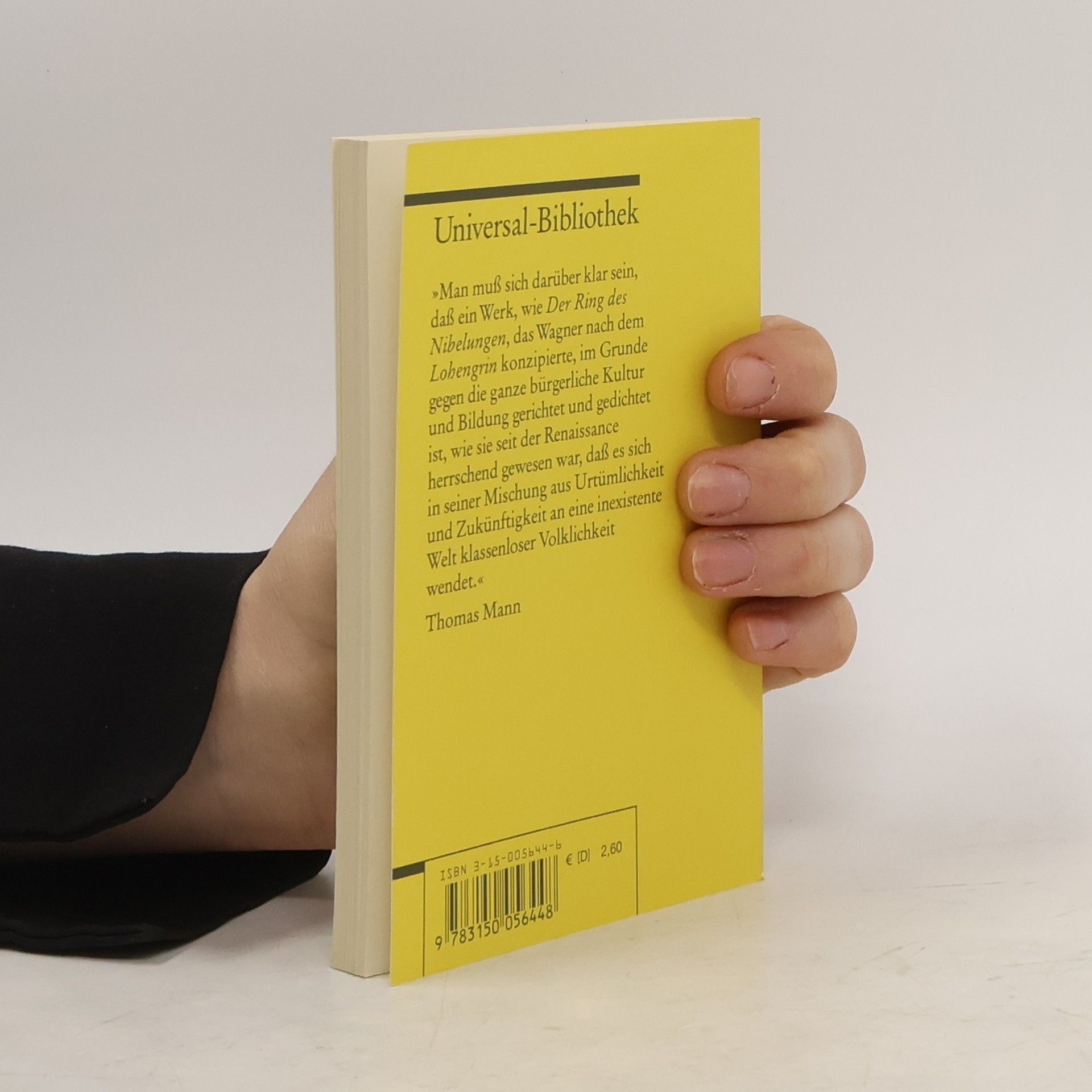 »Man muß sich darüber klar sein, daß ein Werk, wie ›Der Ring des Nibelungen‹, das Wagner nach dem ›Lohengrin‹ konzipierte, im Grunde gegen die ganze bürgerliche Kultur und Bildung gerichtet und gedichtet ist, wie sie seit der Renaissance herrschend gewesen war, daß es sich in seiner Mischung aus Urtümlichkeit und Zukünftigkeit an eine inexistente Welt klassenloser Volklichkeit wendet.« Thomas Mann In der neuen Ausgabe von Egon Voss, ediert nach den Original-Textbüchern, mit den Varianten der Partitur jeweils am Fuß der Seite, ergänzt um Nachwort und Literaturhinweise.