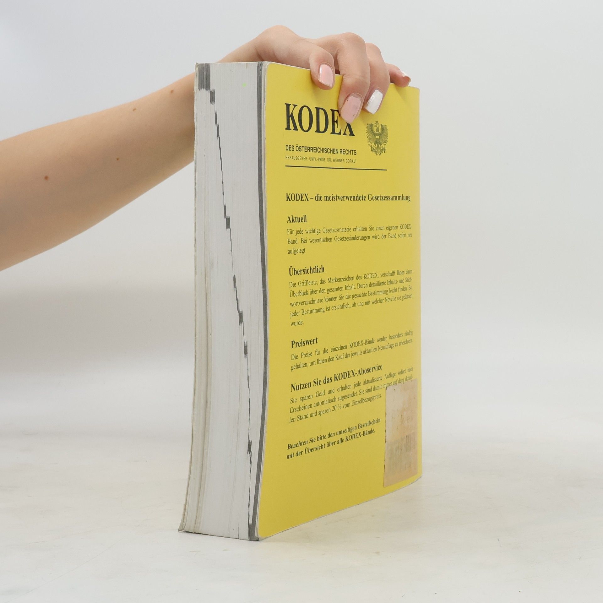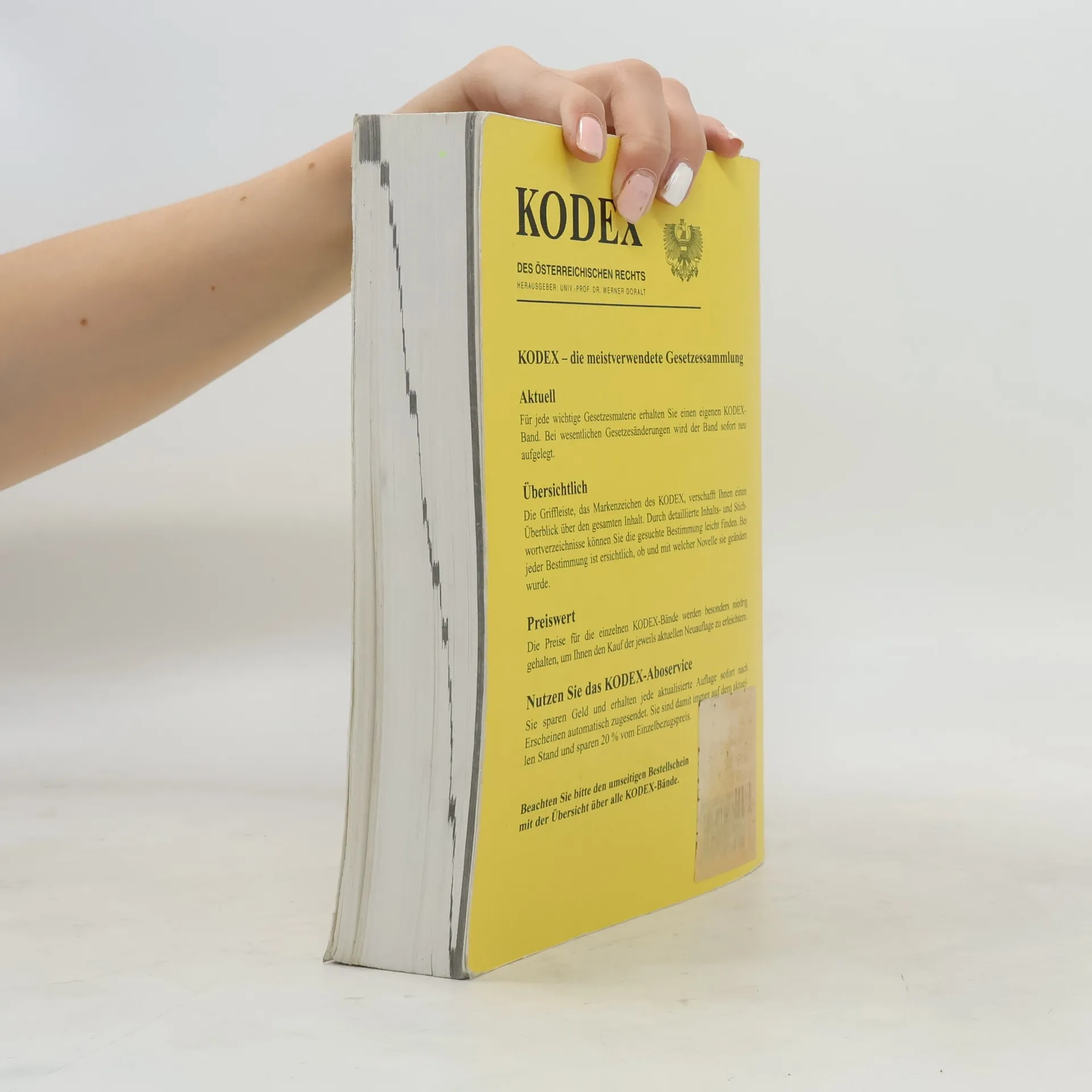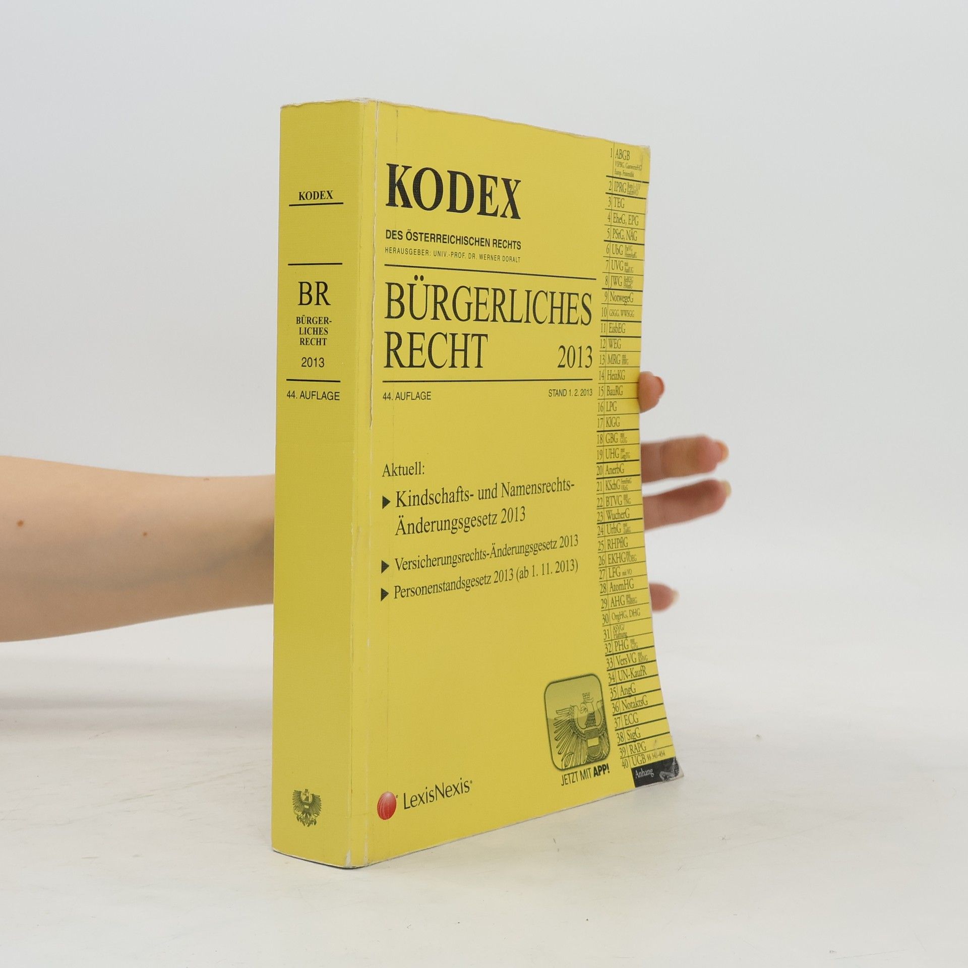 Die 44. Auflage des Kodex Bürgerliches Recht, Stand 1.2.2013, berücksichtigt wesentliche Änderungen im Kindschafts- und Namensrecht, im Versicherungsrecht sowie im Personenstandsgesetz, das ab dem 1.11.2013 in Kraft tritt. Die Sammlung umfasst zahlreiche Gesetze, darunter das Allgemeine Bürgerliche Gesetzbuch (ABGB), das Allgemeine Grundbuchsgesetz (GBG) und das Allgemeine Sozialversicherungsgesetz (ASVG). Weitere enthaltene Gesetze sind das Amtshaftungsgesetz (AHG), das Anerbengesetz (AnerbG), das Angestelltengesetz (AngG) und das Atomhaftungsgesetz (AtomHG). Auch internationale Regelungen wie die EU-Verordnungen zu vertraglichen und außervertraglichen Schuldverhältnissen (Rom I und II) sowie zur Ehescheidung (Rom III) sind aufgeführt. Zusätzlich werden Gesetze wie das E-Commerce-Gesetz (ECG), das Ehegesetz (EheG), das Eingetragene Partnerschaft-Gesetz (EPG) und das Mietrechtsgesetz (MRG) behandelt. Weitere wichtige Gesetze sind das Konsumentenschutzgesetz (KSchG), das Urheberrechtsgesetz (UrhG) und das Unternehmensgesetzbuch (UGB). Die Kodex App bietet nun auch Zugriff auf diese umfassende Sammlung, die für Juristen und Interessierte von großer Bedeutung ist.