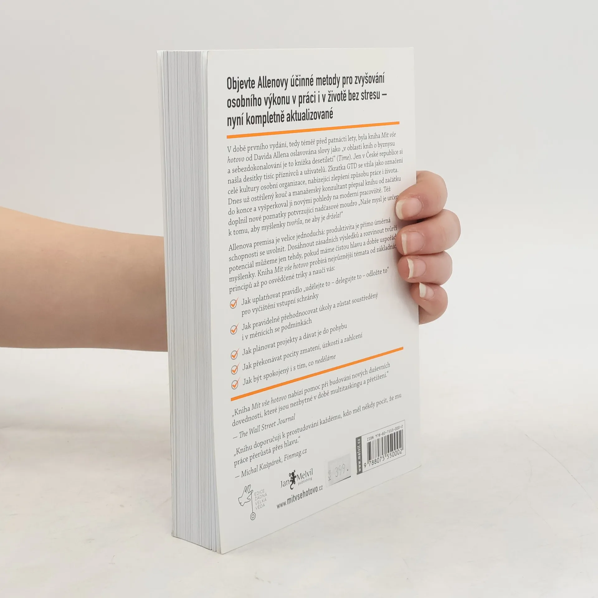 David Allen vás nenaučí organizovat pracovní úkoly, abyste pracovali více, ale naopak! Zavedením metodologie GTD do vašeho pracovního života zefektivníte práci, získáte volný čas, zbavíte se stresu a zklidníte mysl. Vedlejším účinkem je i zlepšení kvality spánku a vnitřní spokojenosti. Tato kniha se odlišuje od ostatních publikací o produktivitě. Poprvé vyšla před patnácti lety a od té doby se stala fenoménem s třemi miliony prodaných výtisků ve více než 30 jazycích. Statisíce lidí díky metodě GTD plánují svůj čas a věnují se práci, rodině i koníčkům. Účastníci kurzů a workshopů prohloubili znalosti natolik, že je mohli zavést do firem, což vedlo k lepší organizaci a spokojenosti zaměstnanců. Podle časopisu TIME je tato kniha nejlepší knihou desetiletí v oblasti osobního rozvoje. David Allen přepsal původní rukopis, zrevidoval obsah a jazyk, přičemž zachoval základní principy a techniky. Považován za jednoho z nejvlivnějších myslitelů v osobní produktivitě, Allen pracuje pro významné organizace a vede workshopy po celém světě. S více než pětatřicetiletou praxí manažerského konzultanta a kouče je jeho práce často zmiňována v prestižních periodikách. Allen žije v Amsterdamu.
