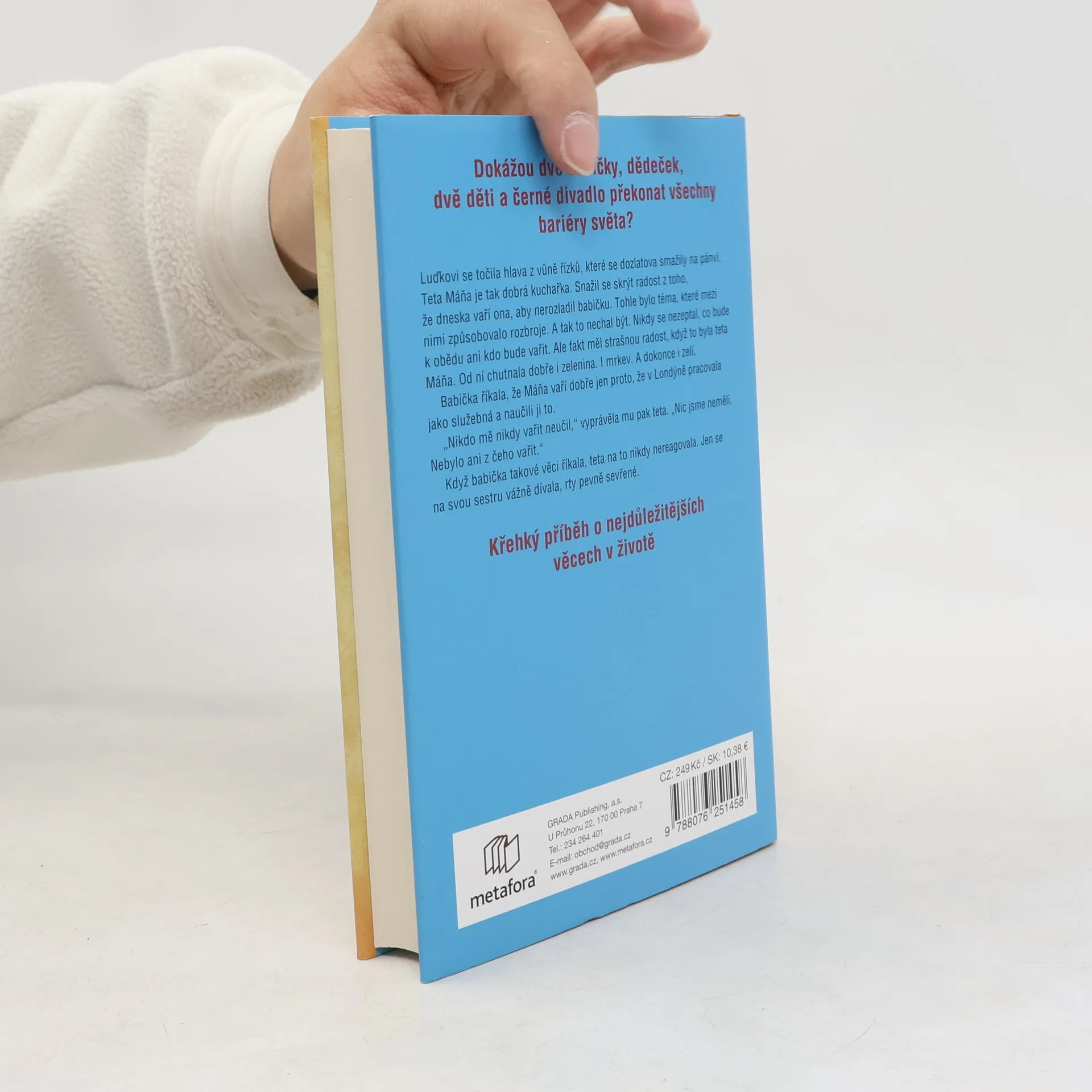Praha, 1938 – Eva s Máňou se vracejí z posledního sletu Sokola, když se nechtěně srazí s rozzuřeným mužem. Jeho nenávist a blížící se válka mění jejich životy. Máňa se musí sbalit a emigrovat do neznáma… Praha, 1980 – Desetiletý Luděk umí být neviditelný, skáče a prosmýkne se skrze šedivé mraky nad městem. Je svobodný a jeho domov je teplý a plný lásky, čeká na něj babička. Melbourne, 1980 – Malá liška se drží babiččiny ruky, když stoupají k jejich bytu. Vůně tabáku a čerstvě upečených koláčků je vítá. Tento domov, který vybudovali čeští imigranti Máňa s Billem, je pro ni prosycen duchem Prahy a vzpomínkami na ty, které museli opustit. Je někde život snazší? Je lepší zůstat nebo odejít? I uprostřed temnoty lze zahlédnout barvy. Křehký příběh je poctou silným ženám, které udržují rodinná pouta. Je to úsměvná vzpomínka na druhou polovinu minulého století vyprávěná z pohledu šťastného dítěte obklopeného láskou. Autorka vzdává hold svým prarodičům, kteří jí vytvořili domov, a Černému divadlu Jiřího Srnce, jež vnášelo barvy do temnoty.