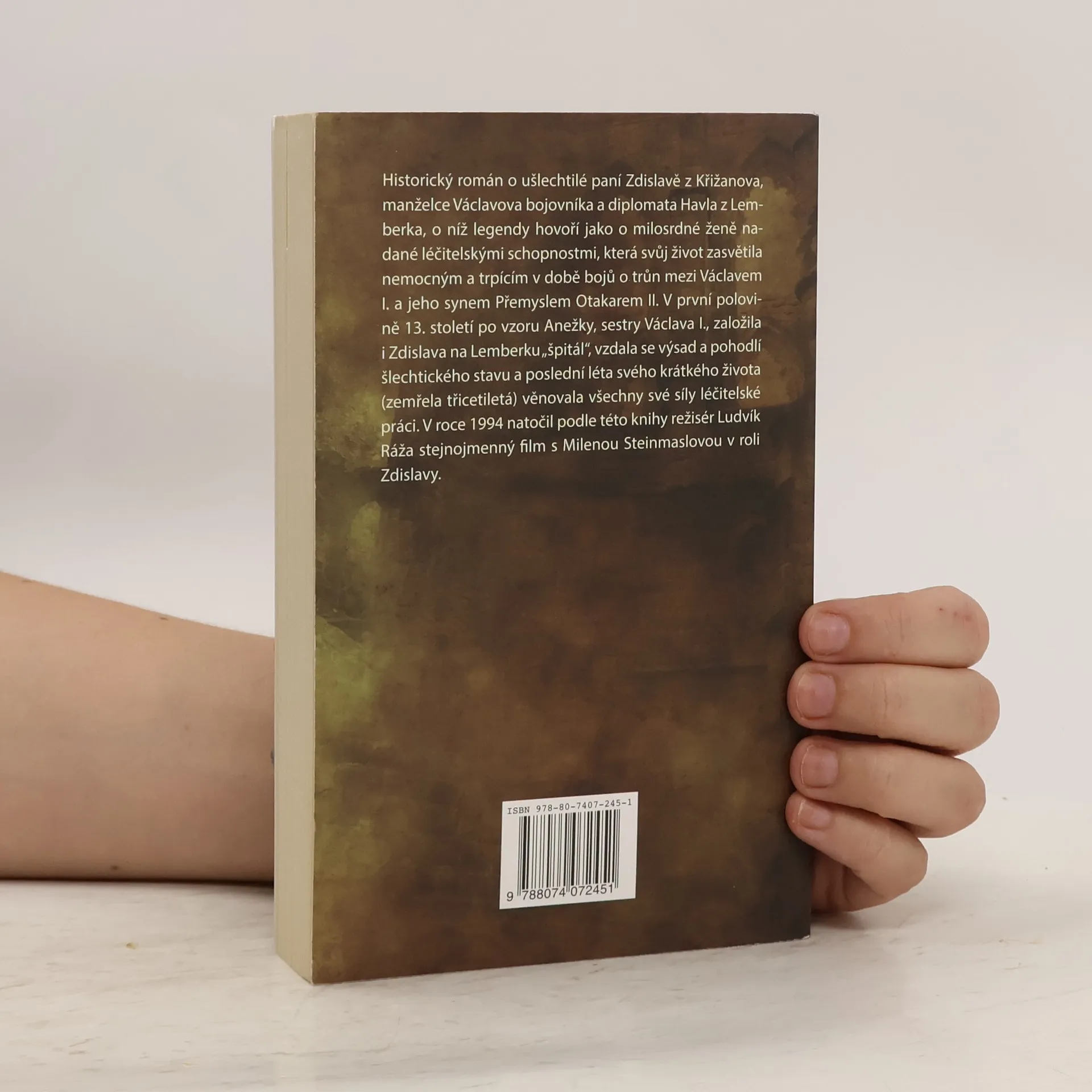 Historický román o ušlechtilé paní Zdislavě z Křižanova, manželce Václavova bojovníka a diplomata Havla z Lemberka, o níž legendy hovoří jako o milosrdné ženě nadané léčitelskými schopnostmi, která svůj život zasvětila nemocným a trpícím v době bojů o trůn mezi Václavem I. a jeho synem Přemyslem Otakarem II. V první polovině 13. století po vzoru Anežky, sestry Václava I., založila i Zdislava na Lemberku "špitál", vzdala se výsad a pohodlí šlechtického stavu a poslední léta svého krátkého života (zemřela třicetiletá) věnovala všechny své síly léčitelské práci. V roce 1994 natočil podle této knihy režisér Ludvík Ráža stejnojemnný film s Milenou Steinmaslovou v roli Zdislavy.