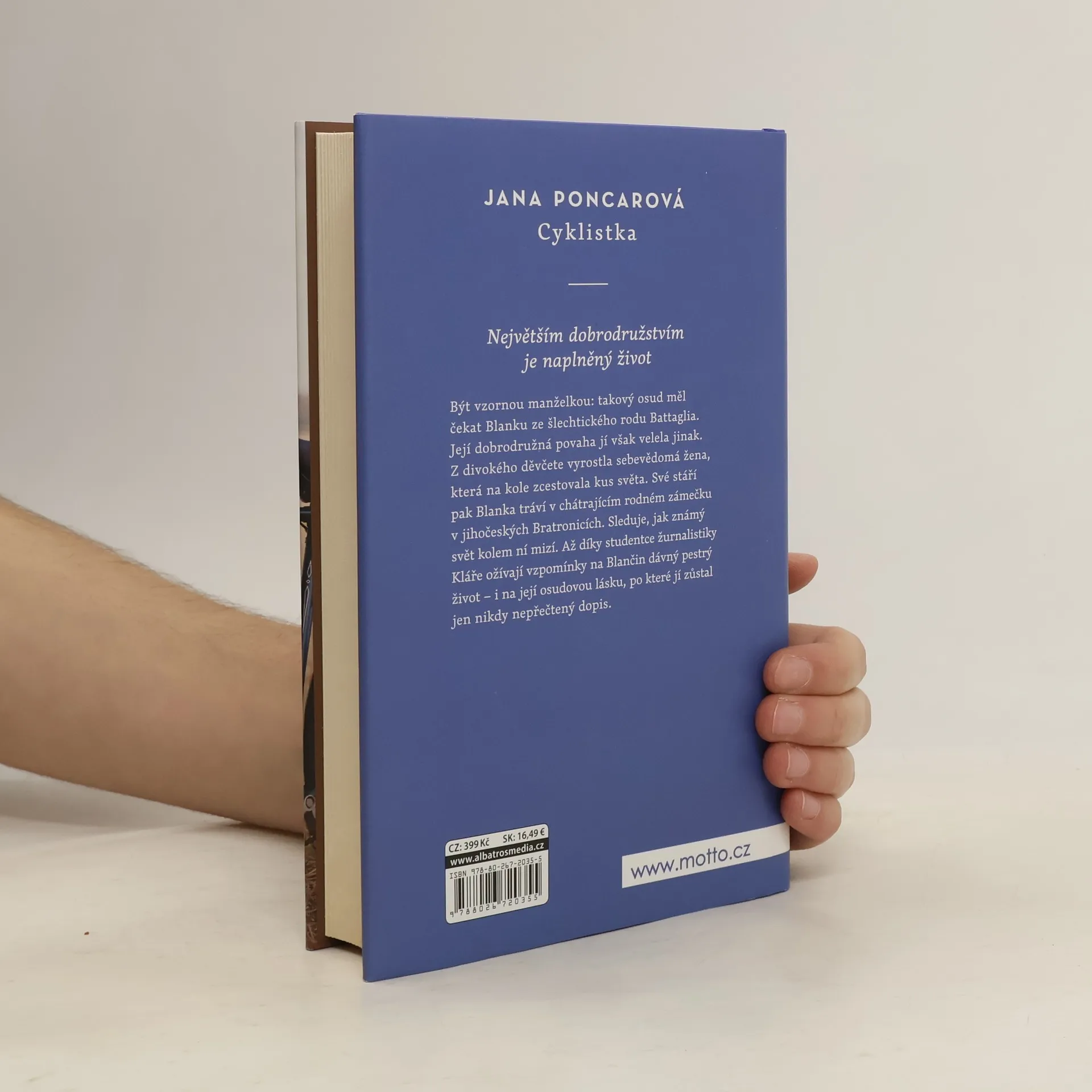Osud poslední šlechtičny z rodu Battaglia. Od autorky bestselleru Podbrdské ženy. Být vzornou manželkou: takový osud měl čekat Blanku ze šlechtického rodu Battaglia. Její dobrodružná povaha jí však velela jinak. Z divokého děvčete vyrostla sebevědomá žena, která na kole zcestovala kus světa. Své stáří Blanka pak tráví v chátrajícím rodném zámečku v jihočeských Bratronicích. Sleduje, jak známý svět kolem ní mizí. Až díky studentce žurnalistiky Kláře ožívají vzpomínky na Blančin dávný pestrý život – i na její osudovou lásku, po které jí zůstal jen nikdy nepřečtený dopis.