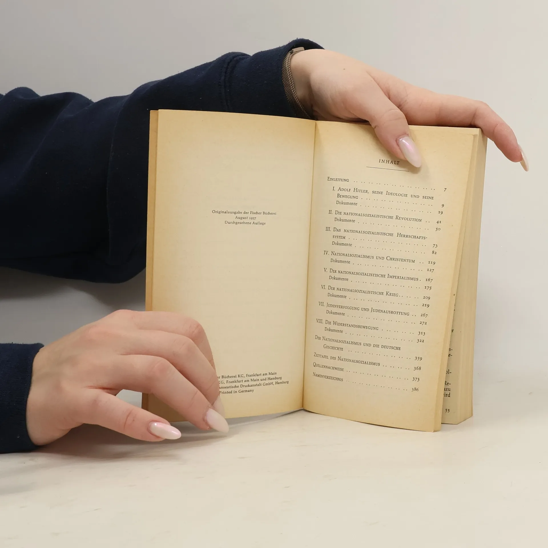 Die Erfahrung hat gelehrt, dass geschichtliche Ereignisse erst in gehörigem Abstand interpretiert und sachlich dargestellt werden können. Aus diesem Grunde unterlagen auch viele Publikationen über das Phänomen des Nationalsozialismus tendenziösen Einflüssen und begegneten dadurch zum Teil dem Widerstand der Leserschaft. Wir haben daher versucht, die politischen Ereignisse der jüngsten deutschen Vergangenheit selbst sprechen zu lassen. Die Dokumente, die Walther Hofer, Professor für Neuere Geschichte an der Universität Bern, zusammengestellt und kommentiert hat, sprechen eine beredte Sprache. Jeder Satz hat authentischen Aussagewert und steht für eine menschliche und politische Haltung, die als abschreckendes Exempel der Gegenwart vor Augen geführt werden muss. Wir hoffen, dass dieses Brevier der Unmenschlichkeit, das zugleich die Kräfte eines anderen, besseren Deutschland beschwört, seine Wirkung auf die Leser nicht verfehlen wird.