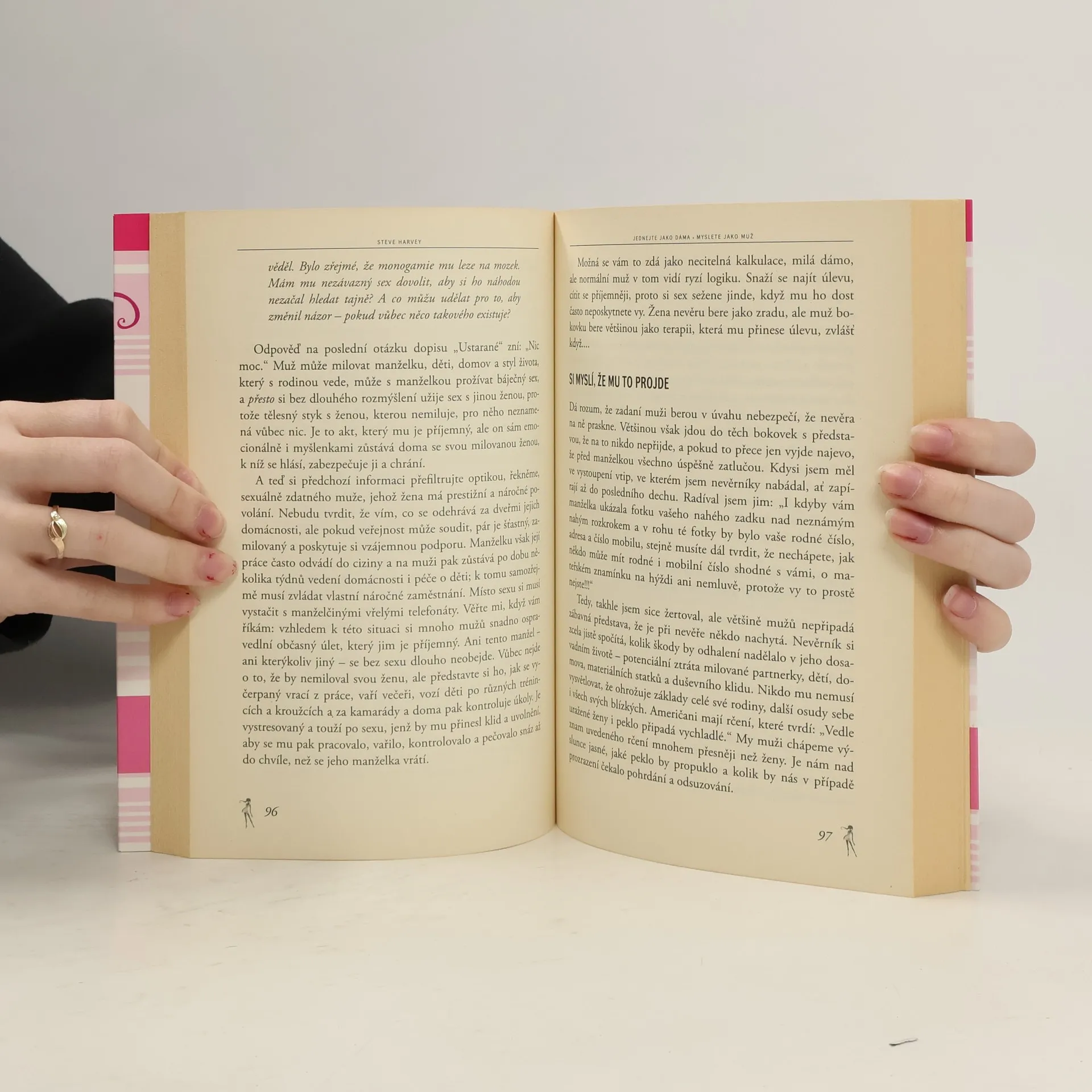 Čo si muži skutočne myslia o láske, vzťahoch, intímnostiach a vernosti. V knihe Konaj ako dáma, mysli ako muž Steve zoznamuje ženy s mužským pohľadom a objasňuje pojmy a otázky, ako sú: Deväťdesiatdňové pravidlo: Spoločnosť Ford ho vyžaduje od svojich zamestnancov. Mali by ste ho vyžadovať od svojho partnera? Ako spoznať mamičkinho synáčika a čo, ak sa to vôbec dá, s tým môžeme urobiť. Kedy ho zoznámiť s deťmi. A čo sa dá vyčítať z prvej interakcie medzi ním a vašimi deťmi. Päť otázok, ktoré by mala mužovi položiť každá žena, aby vedela, ako vážne to s ňou myslí. A ešte viac... Niekedy zábavnú, inokedy priamu knihu Konaj ako dáma, mysli ako muž si musíte prečítať, ak chcete pochopiť mužské poňatie vzťahov.