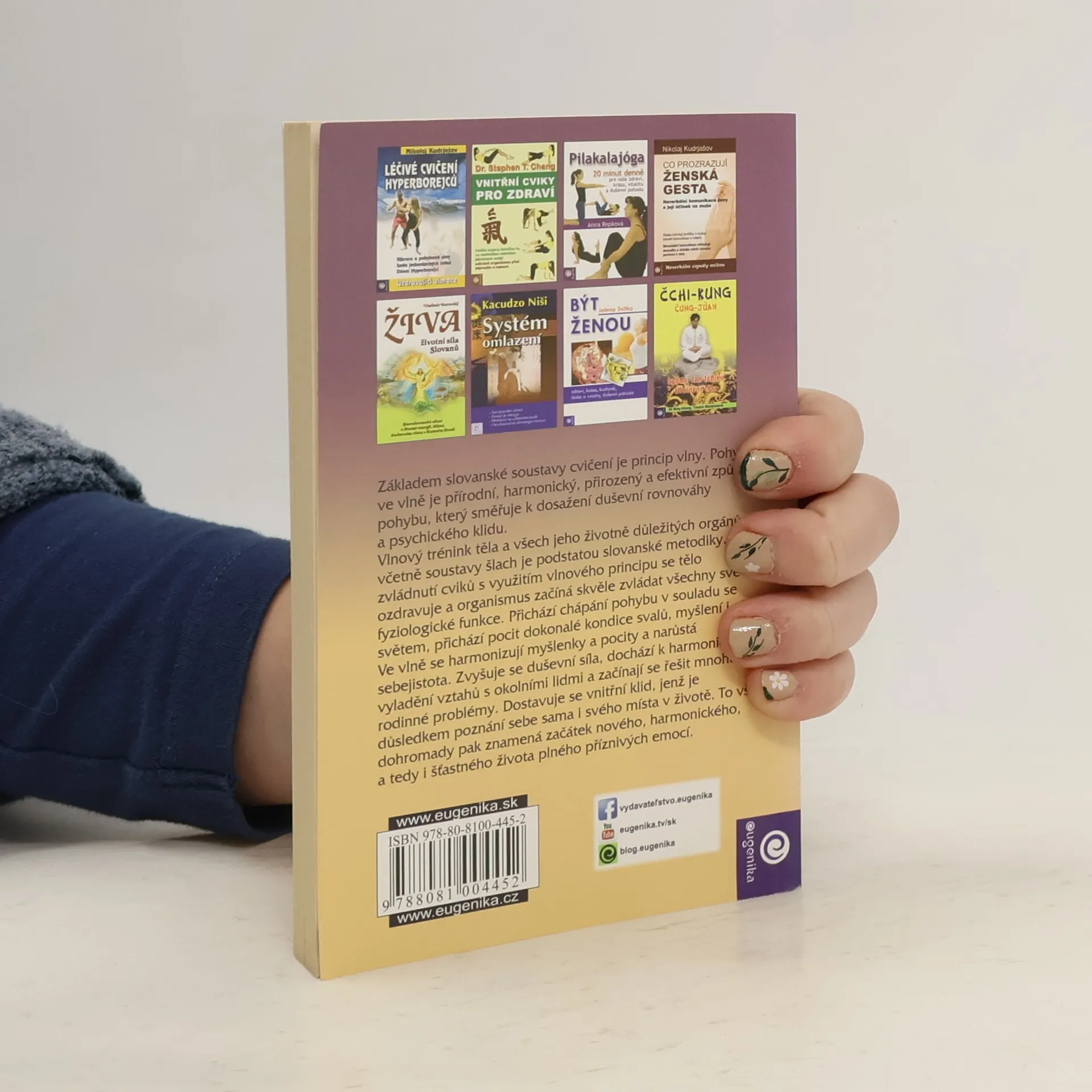 Základem slovanské soustavy cvičení je princip vlny. Vlnový trénink těla a všech jeho životně důležitých orgánů včetně soustavy šlach je podstatou slovanské metodiky, s níž se v knize seznámíte. Díky zvládnutí cviků s využitím vlnového principu se tělo ozdravuje. Přichází pocit dokonalé kondice svalů a síly. Ve vlně se harmonizují i myšlenky a pocity. Dochází k harmonickému vyladění vztahů. Lze říci, že dochází ke zrození člověka s novými možnostmi!