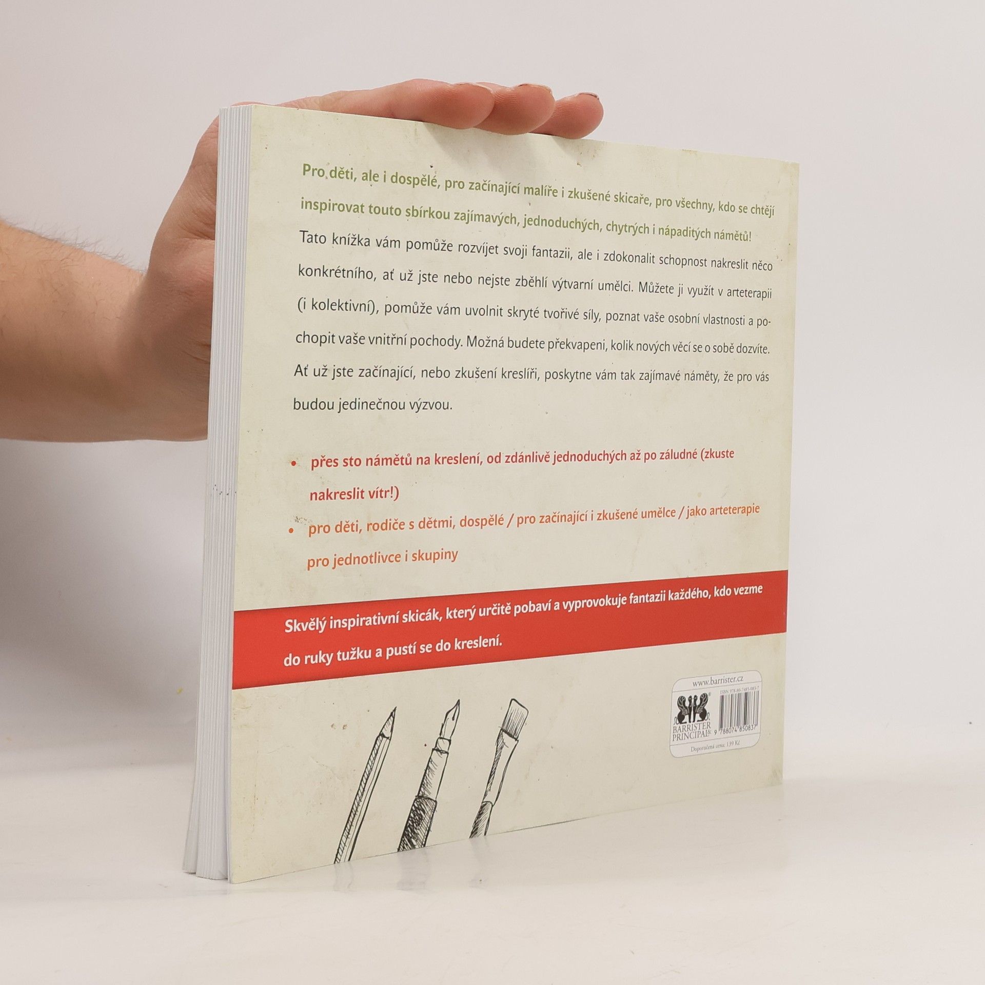 Knížka je určená jak dětem, rozvíjí jejich fantazii, ale i schopnost nakreslit něco konkrétního, tak dospělým, kteří nemusejí být nutně zběhlí výtvarníci. Najde si využití v arteterapii (i kolektivní), kde pomůže uvolnit skryté tvořivé síly, osobní vlastnosti a pochopit některé vnitřní pochody a možná se o sobě dozvědět i něco nového. V neposlední řadě je určena začínajícím i zkušeným kreslířům, kterým knížka poskytne zajímavé náměty, i ty zdánlivě nejjednodušší mohou být výzvou. • přes sto námětů na kreslení, od zdánlivě jednoduchých až po záludné (zkuste nakreslit vítr!) • pro děti, rodiče s dětmi, dospělé / pro začínající i zkušené umělce / jako arteterapie pro jednotlivce i skupiny