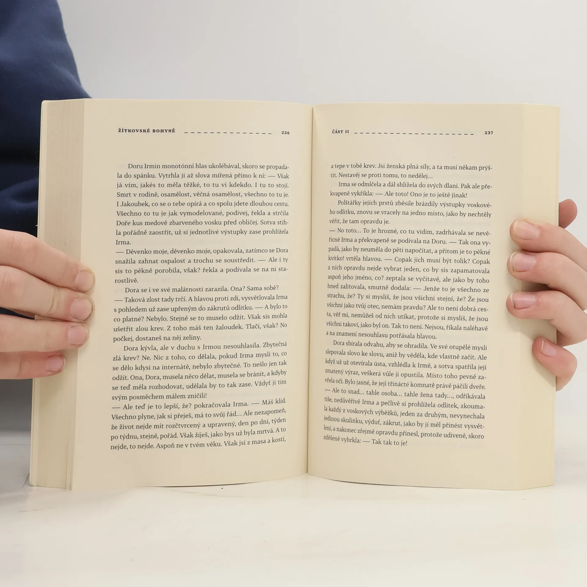 Vysoko v kopcích Bílých Karpat jsou řídce rozeseta přikrčená stavení. Všude je daleko. Říká se, že právě proto si tam některé ženy dokázaly uchovat vědomosti a intuici, kterou jsme ztratili. Předávaly si ji z generace na generaci řadu století. Říkali jim bohyně, protože dokázaly bohovat – prosit Boha o pomoc. A jeho zásahům i trošku dopomoci… Říkalo se o nich, že vidí do budoucnosti. Proč tedy nezachránily tu svou? Dora Idesová je poslední z bohyní. Brání se přijmout zastaralý způsob života a věštit příchozím z odlitého vosku jako její teta Surmena. Vše se ovšem mění, jakmile pochopí, že co se v jejím životě zdálo být nešťastnou shodou okolností, bylo pečlivě promyšleným plánem. Její umístění v internátě, Jakoubkova ústavní péče, hospitalizace v psychiatrické léčebně v Kroměříži… Na konci 90. let na ni v pardubickém archivu ministerstva vnitra čeká operativní svazek vedený StB na vnitřního nepřítele – její tetu Surmenu. Dora nevěřícně rozplétá neznámé osudy své rodiny i dalších bohyní…