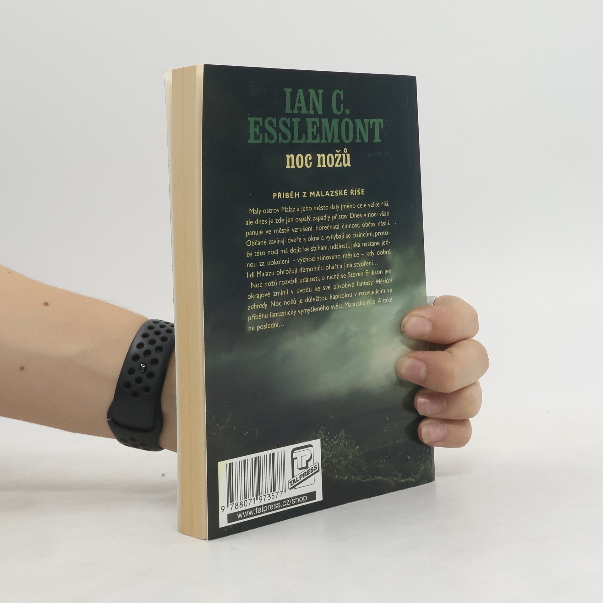 Malý ostrov Malaz a jeho město daly jméno celé velké říši, ale dnes je zde jen ospalý, zapadlý přístav. Tato noc však bude jiná. Dnes v noci panuje ve městě vzrušení, horečnatá činnost, občas násilí. Občané zavírají dveře a okna a vyhýbají se cizincům, protože této noci má dojít ke sbíhání, události, jaká nastane jednou za pokolení – východ stínového měsíce –, kdy dobré lidi Malazu ohrožují démoničtí ohaři a horší stvoření… Bylo také předpovězeno, že se této noci vrátí císař Kellanved, a někteří lidé jsou připravení udělat cokoliv, aby tomu zabránili. Frakce v celé říši soupeří o říšský trůn a stínový měsíc povolává k útoku na ostrov mnohem starobylejší a mocnější bytosti, než jsou lidé. Tyto děsivé události sleduje Kiska, dívka toužící vymanit se z okovů města, a Kalen, prošedivělý veterán, jenž se pouze snaží uniknout své minulosti. Oba hrají jistou úlohu v konfliktu, který nejenže určí další osud města Malaz, ale zároveň i celého okolního světa… Noc nožů rozvádí události, o nichž se Steven Erikson jen okrajově zmínil v úvodu ke své působivé fantasy Měsíční zahrady. Noc nožů je důležitou kapitolou v rozvíjejícím se příběhu fantasticky vymyšleného světa Malazské říše.