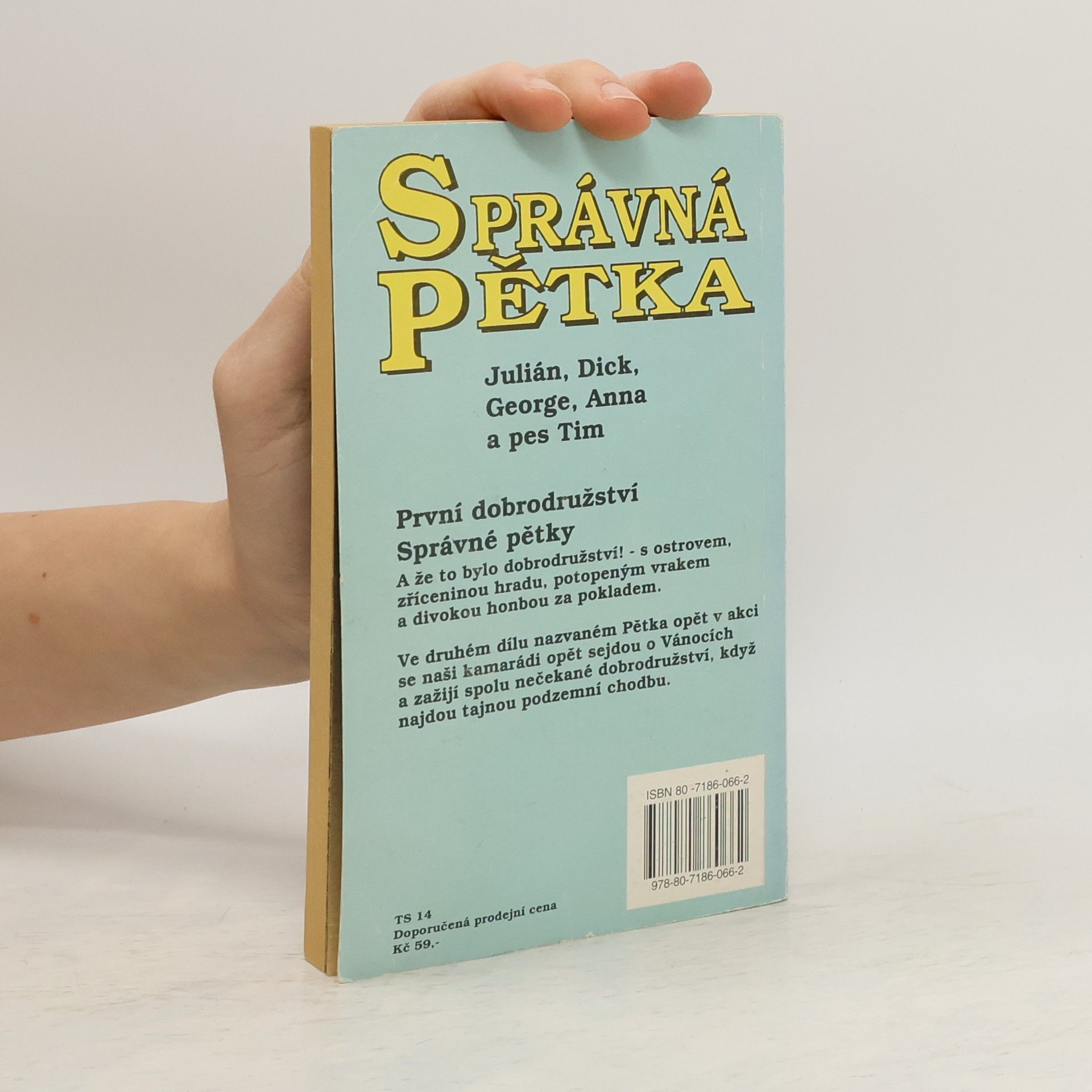 Správná pětka, to jsou ve skutečnosti čtyři a pes! Julián, Dick, George, Anna a pes Tim.Taky byste si přáli mít vlastní ostrov, který by byl jen a jen váš? A zažít takové dobrodružství jako Správná pětka? Plavili byste se po moři, přespávali v bouři ve zřícenině starého hradu a prozkoumali potopený vrak! A jak má takové správné dobrodružství skončit? Přece honbou za pokladem!