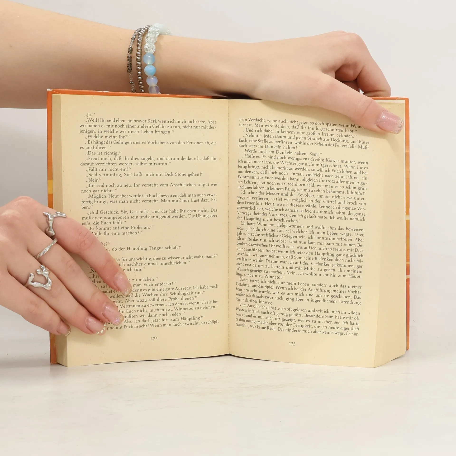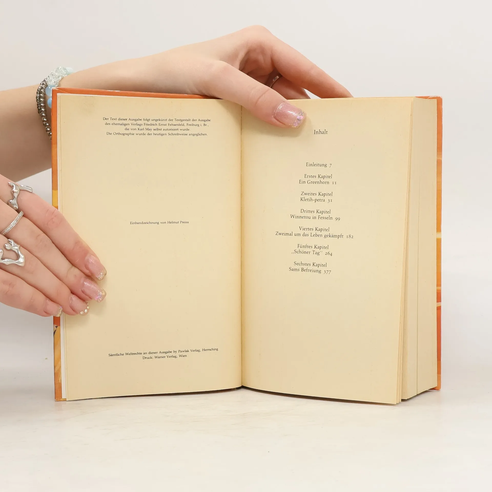 Der Leser erfährt, wie der Ich-Erzähler zum berühmten Westmann Old Shatterhand wird und die Freundschaft des edlen Apatschen Winnetou erringt. Das tragische Schicksal Nscho-tschis verleiht dieser Geschichte jenen Hauch von Schwermut, der über dem verzweifelten Todesringen der roten Rasse liegt.
