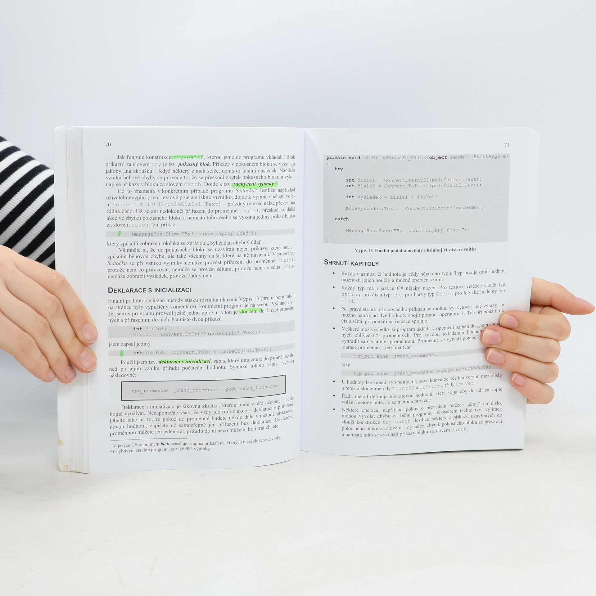 Knih o programování je spousta, málokterá je však přístupná zájemcům, kteří s programováním teprve začínají. Tato učebnice je vzácnou výjimkou. Do světa tvorby softwaru vás uvede pozvolna, výkladem „polopatě“ na názorných příkladech zaměřených na praktické zvládnutí problematiky. Autor v ní zúročil své dlouholeté zkušenosti s výukou programování od úrovně začátečníků. S pomocí této knihy se naučíte vytvářet hezky vypadající aplikace s grafickým uživatelským rozhraním, po krůčcích budete poznávat základní principy tvorby softwaru. Praktické příklady, na nichž je výklad postaven, jsou zaměřeny na grafiku, jednoduché hry i ekonomické výpočty. Proniknete do tajů moderní platformy .NET, programovacího jazyka C# i špičkového vývojového prostředí Visual Studio. Současné čtvrté vydání knihy je rozsáhle aktualizované pro novou verzi vývojářských nástrojů. Visual Studio je nyní lokalizováno do češtiny, začínající programátor má tedy své studium usnadněno tím, že již nemusí zápasit s anglickými popisky a chybovými hláškami. Knihu využijete jak při samostudiu, tak v úvodních kurzech programování na školách. Sdílejte s autorem jeho radost z programování!