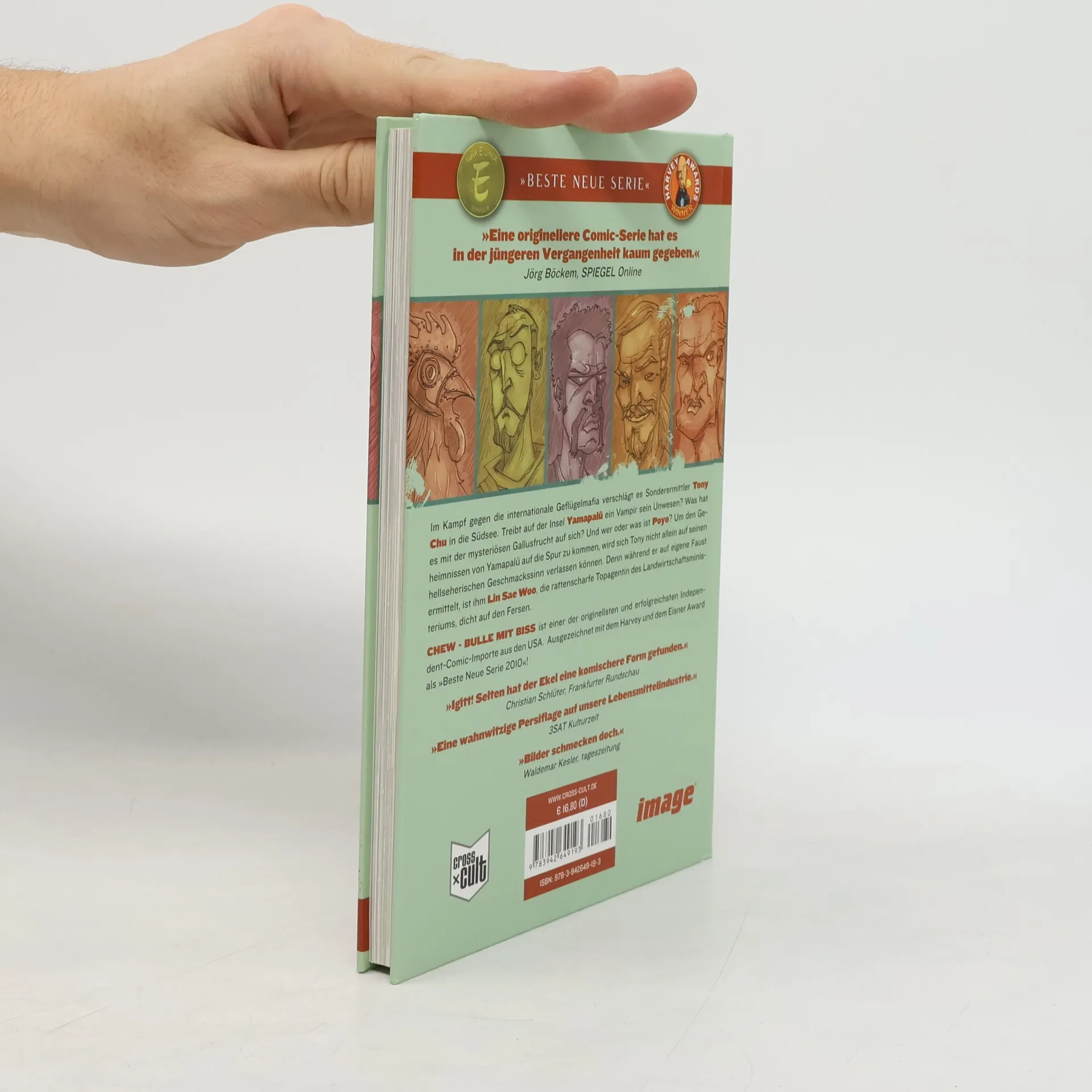 Im Kampf gegen die internationale Geflügelmafia verschlägt es Sonderermittler Tony Chu in die Südsee. Treibt auf der Insel Yamapalü ein Vampir sein Unwesen? Was hat es mit der mysteriösen Gallusfrucht auf sich? Und wer oder was ist Poyo? Um den Geheimnissen von Yamapalü auf die Spur zu kommen, wird sich Tony nicht allein auf seinen hellseherischen Geschmackssinn verlassen können. Denn während er auf eigene Faust ermittelt, ist ihm Lin Sae Woo, die scharfe Topagentin des Landwirtschaftsministeriums, dicht auf den Fersen. CHEW - BULLE MIT BISS ist einer der originellsten und erfolgreichsten Independent-Comic-Importe aus den USA. Ausgezeichnet mit dem Harvey und dem EISNER Award als „Beste Neue Serie 2010“!