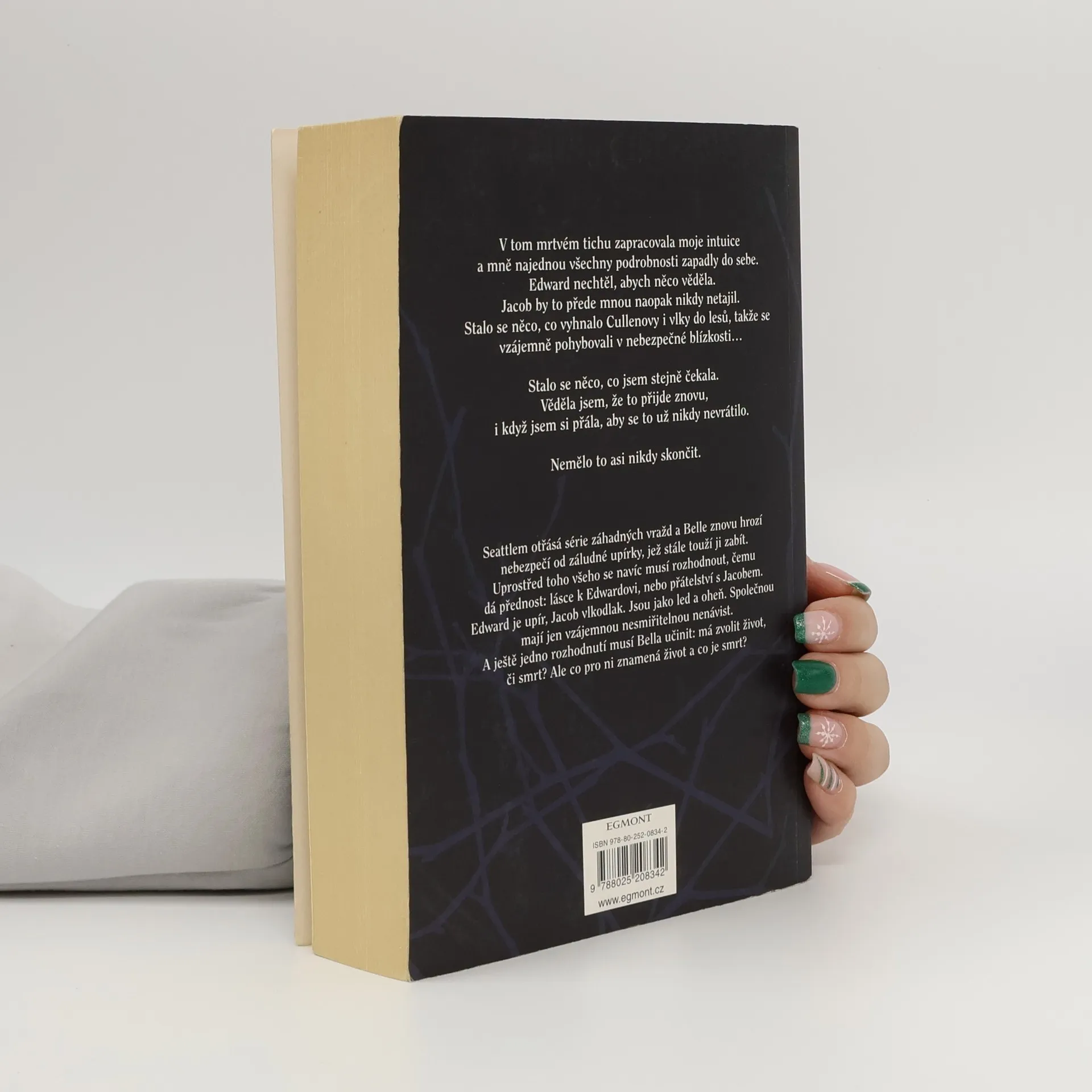 Docela dobrý díl. V polovině knihy jsem sice knihu musela odložit, jelikož přestávala být chuť na čtení, ale když se člověk do příběhu opravdu začte, tak by se to zvádlo přečíst klidně za tři dny s přehledem. To já bohužel neumím, musím mít na to chuť. A teď k příběhu. Edwarda mám ráda jako postavu, přijde mi kultivovaný, nesobecký a hodně zamilovaný do Belly. Jacob je pro mě nevychovaný, sobecký Vlk, který chce Bellu jen pro sebe. Ano jsem tým Edward a nebojím se to přiznat. Ale Bella se v téhle knize chová vážně na facku. Po celou dovu příběhu jen fňuká, nebo si stěžuje, že to má šíleně těžké a nemůže si vybrat mezi upírem a vlkodlakem, i když nejšťastnější je jenom s Edwardem. Její chování a rozhodování mě opravdu dostávalo k šílenství, ale možná to byl prostě jen autorčiný cíl.