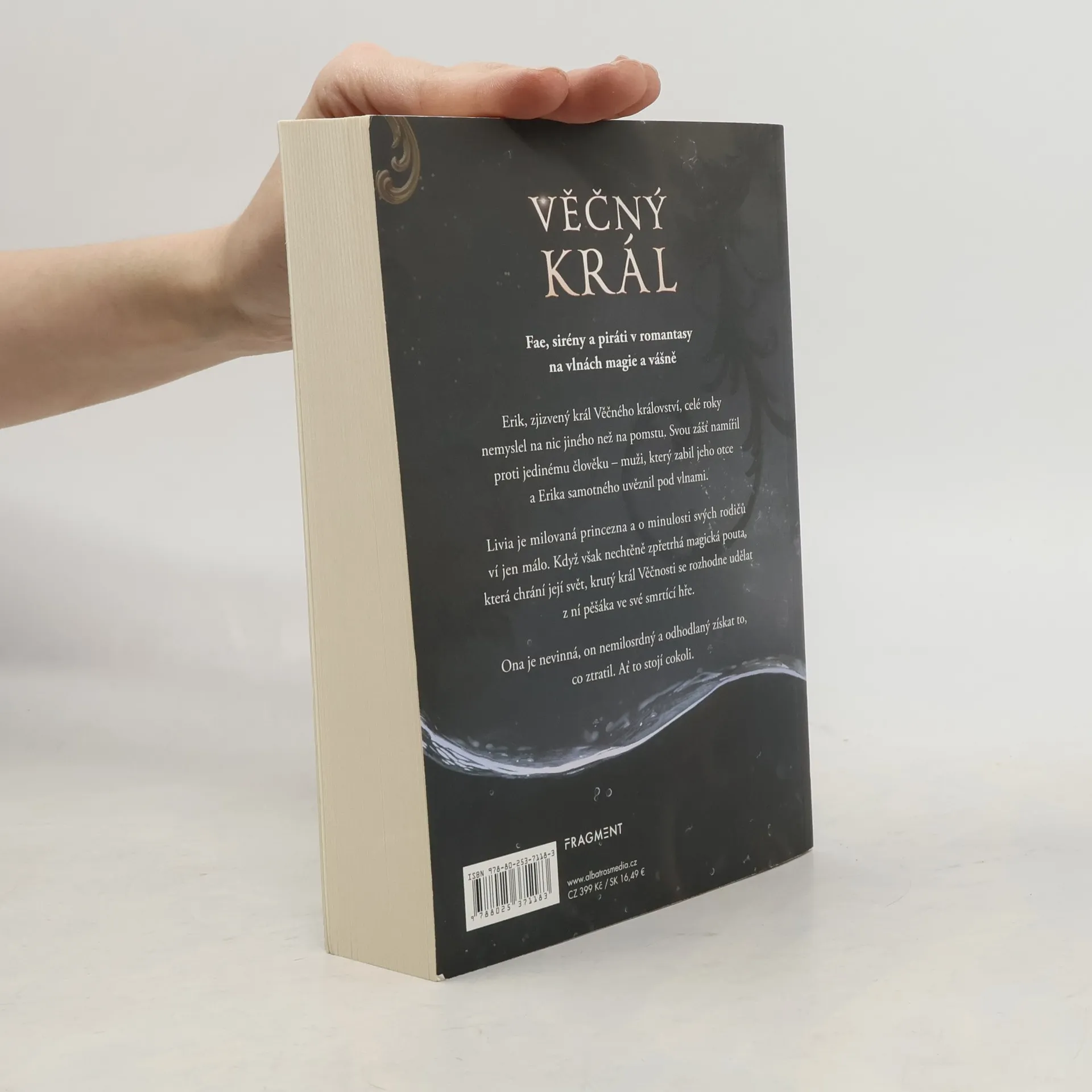 Fae, sirény a piráti v romantasy na vlnách magie a vášně. Erik, zjizvený král Věčného království, celé roky nemyslel na nic jiného než na pomstu. Svou zášť namířil proti jedinému člověku – muži, který zabil jeho otce a Erika samotného uvěznil pod vlnami. Livia je milovaná princezna a o minulosti svých rodičů ví jen málo. Když však nechtěně zpřetrhá magická pouta, která chrání její svět, krutý král Věčnosti se rozhodne udělat z ní pěšáka ve své smrtící hře. Ona je nevinná, on nemilosrdný a odhodlaný získat to, co ztratil. Ať to stojí cokoli.