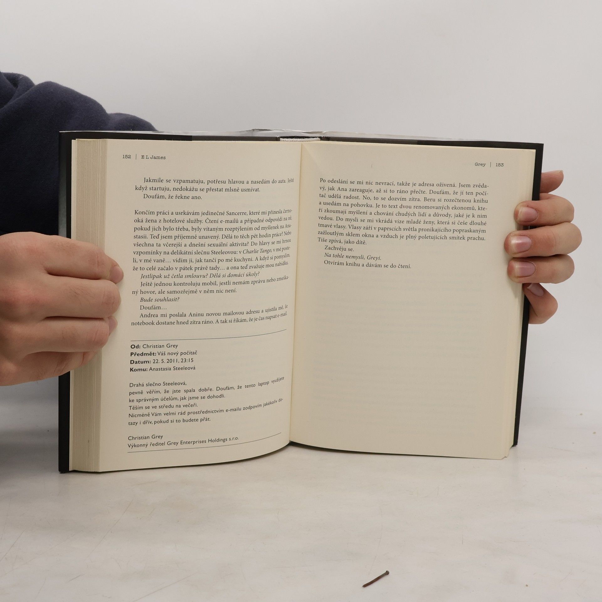 Strhující erotický román Padesát odstínů šedi očima Christiana Greye. Prostřednictvím jeho vlastních slov, myšlenek, úvah a snů nabízí E L James jiný pohled na milostný příběh, který uchvátil miliony čtenářů po celém světě. CHRISTIAN GREY má rád kontrolu v každé situaci. Jeho život je uspořádaný, disciplinovaný a naprosto prázdný – až do dne, kdy do jeho kanceláře vpadne půvabně neohrabaná a rozevlátá Anastasia Steeleová. Po jejím odchodu se na ni Christian snaží zapomenout, ale místo toho se zmítá v bouři emocí, kterým nerozumí ani jim nedokáže odolat. Vypadá to, že na rozdíl od žen, s nimiž se stýkal dřív, do něj Ana vidí – že přes masku úspěšného obchodníka užívajícího si luxusní životní styl pronikne až do Christianova chladného a zraněného srdce. Zažene vztah s Anou děsivé zážitky z dětství, které Christiana každou noc pronásledují? Nebo jeho temné sexuální touhy, tendence ovládat druhé a zničující sebenenávist Anu odradí a zničí křehkou naději, kterou mu dává?